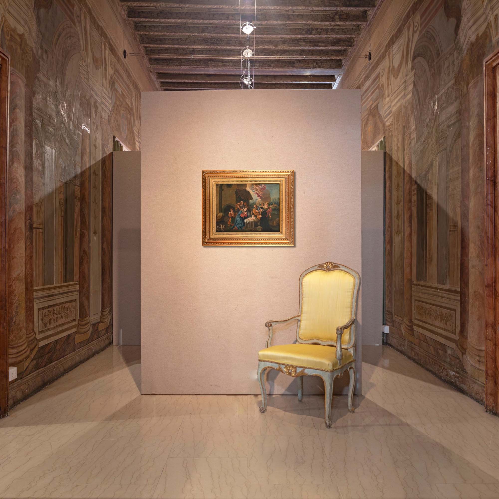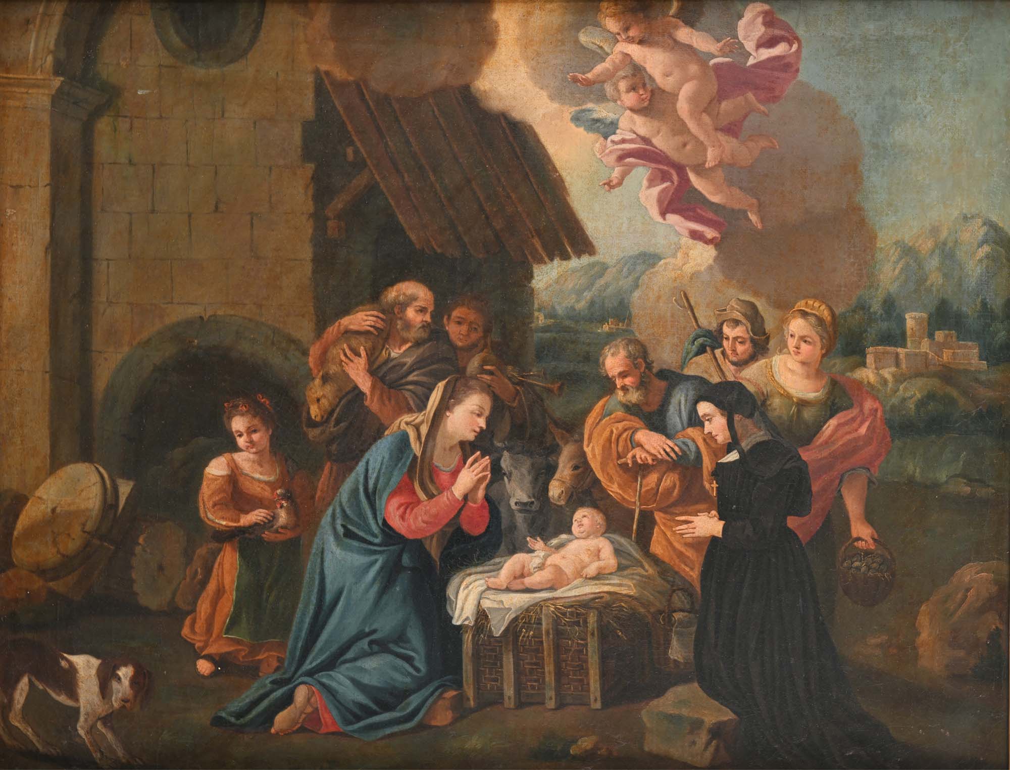 Scuola veneta del XVIII secolo Natività olio su tela cm 49x62 con cornice cm 74x88