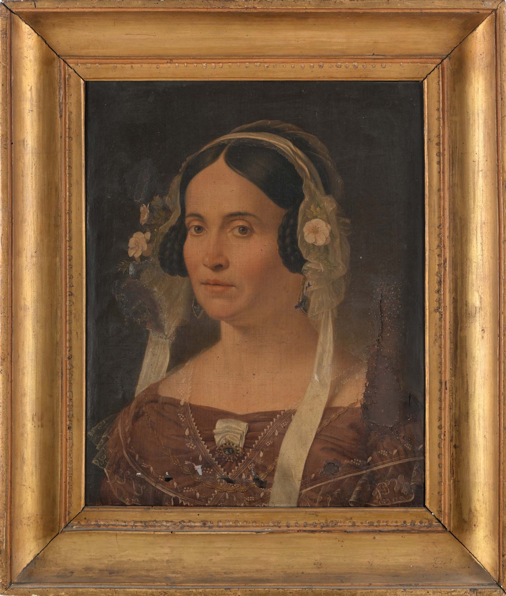 Scuola Italiana del XIX secolo Ritratto di Gentildonna cm 37,5x48 - con cornice cm 63x53