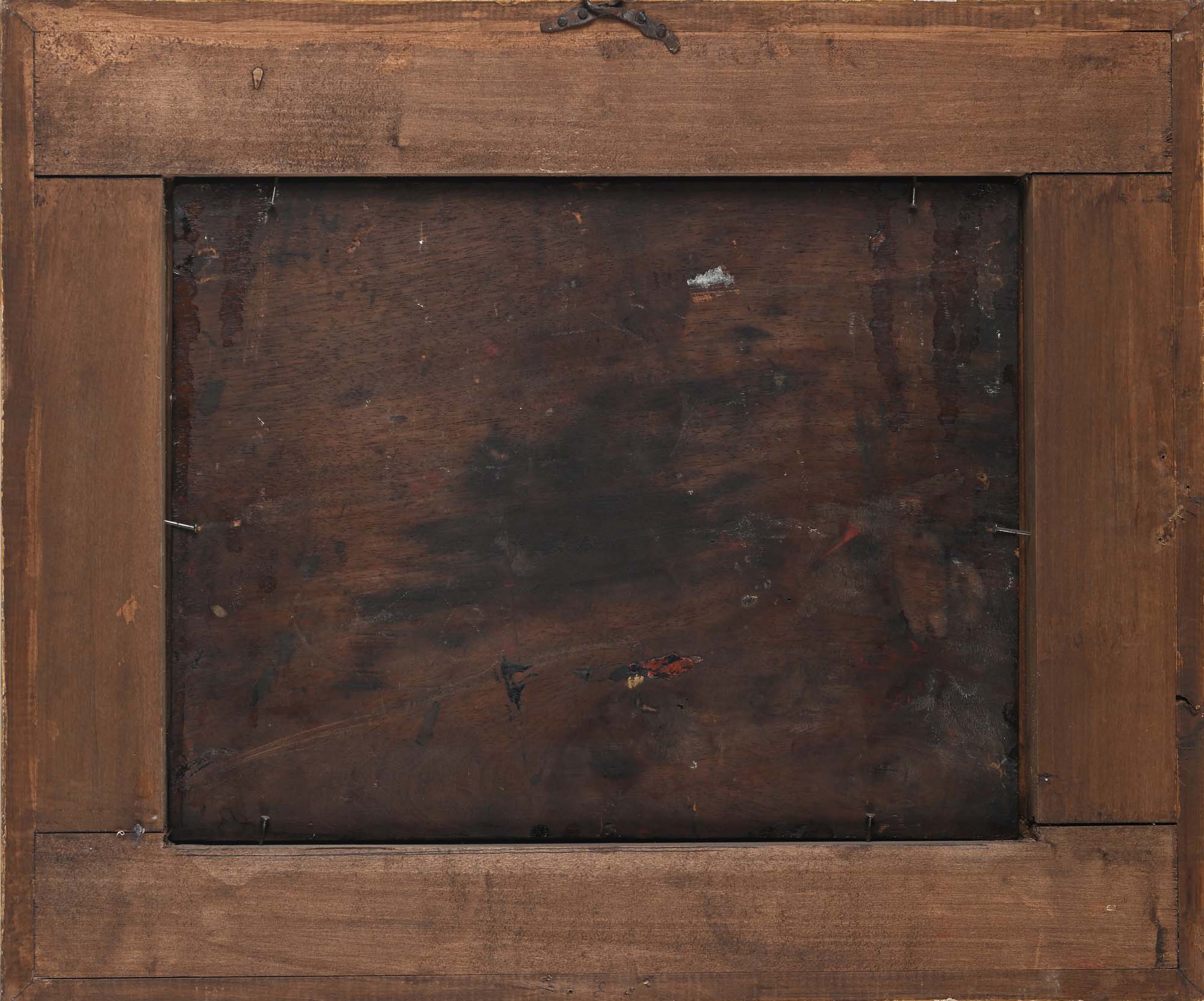 Pittore del XVII secolo Paesaggio boschivo con figure Olio su tavola cm 32x41 - con cornice cm 48x57