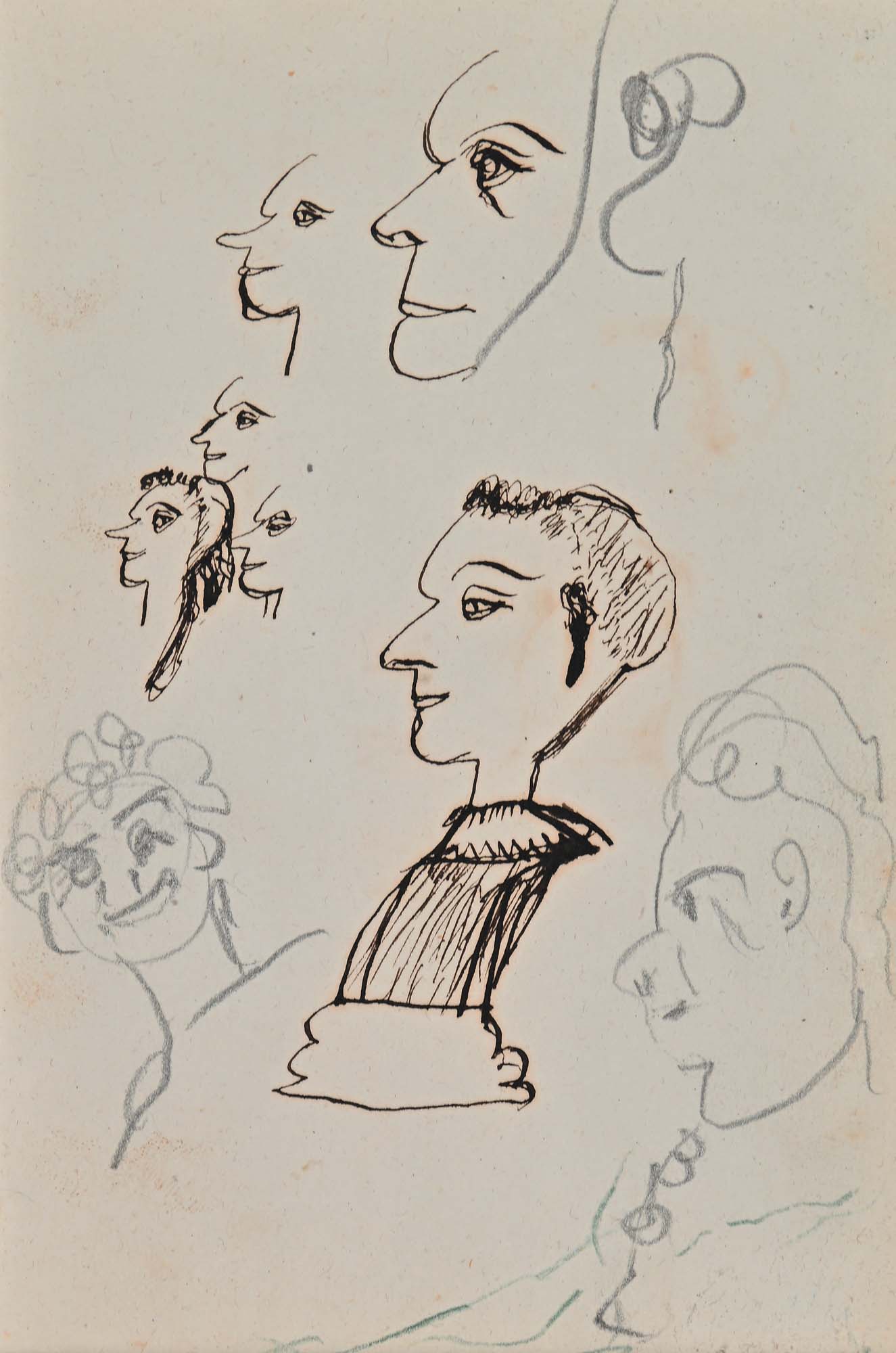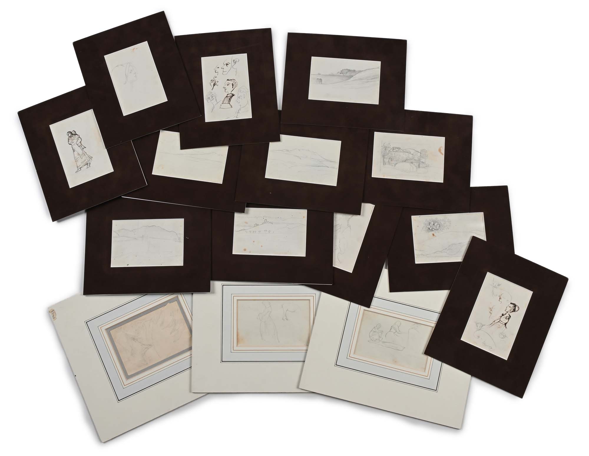 Giovanni (Nino) Costa Roma 1826-Marina Di Pisa 1903 Taccuino di quindici fogli Studi di paesaggio e figura e caricture matita e inchiostro su carta cm 8,8x13
