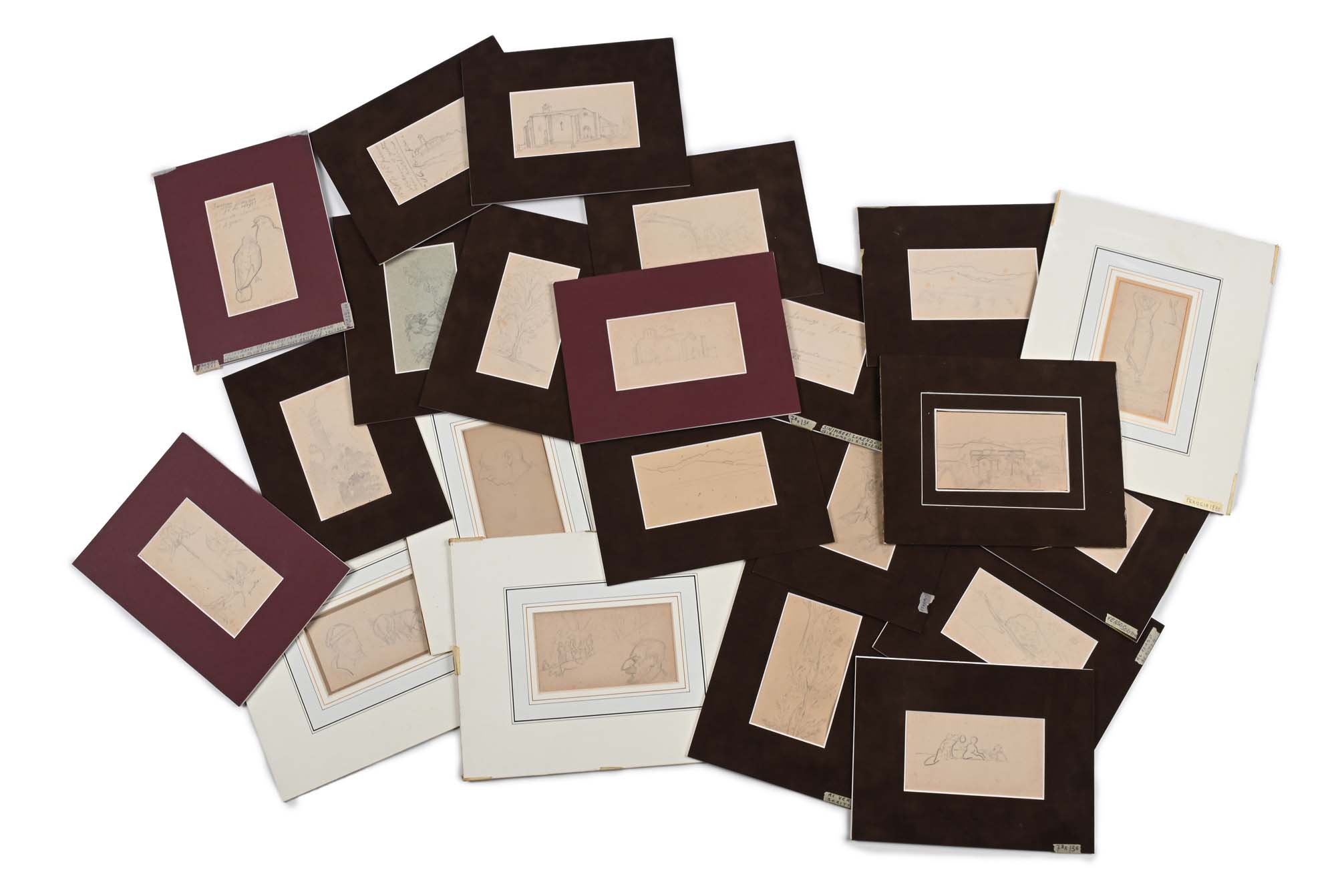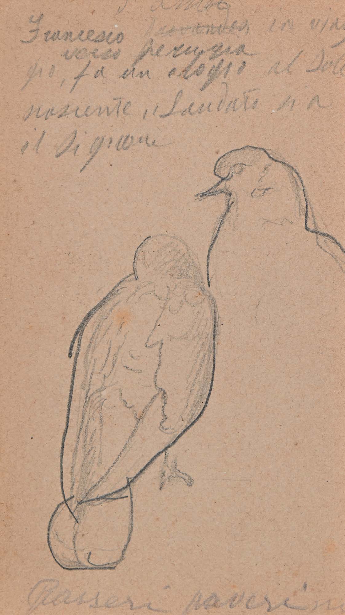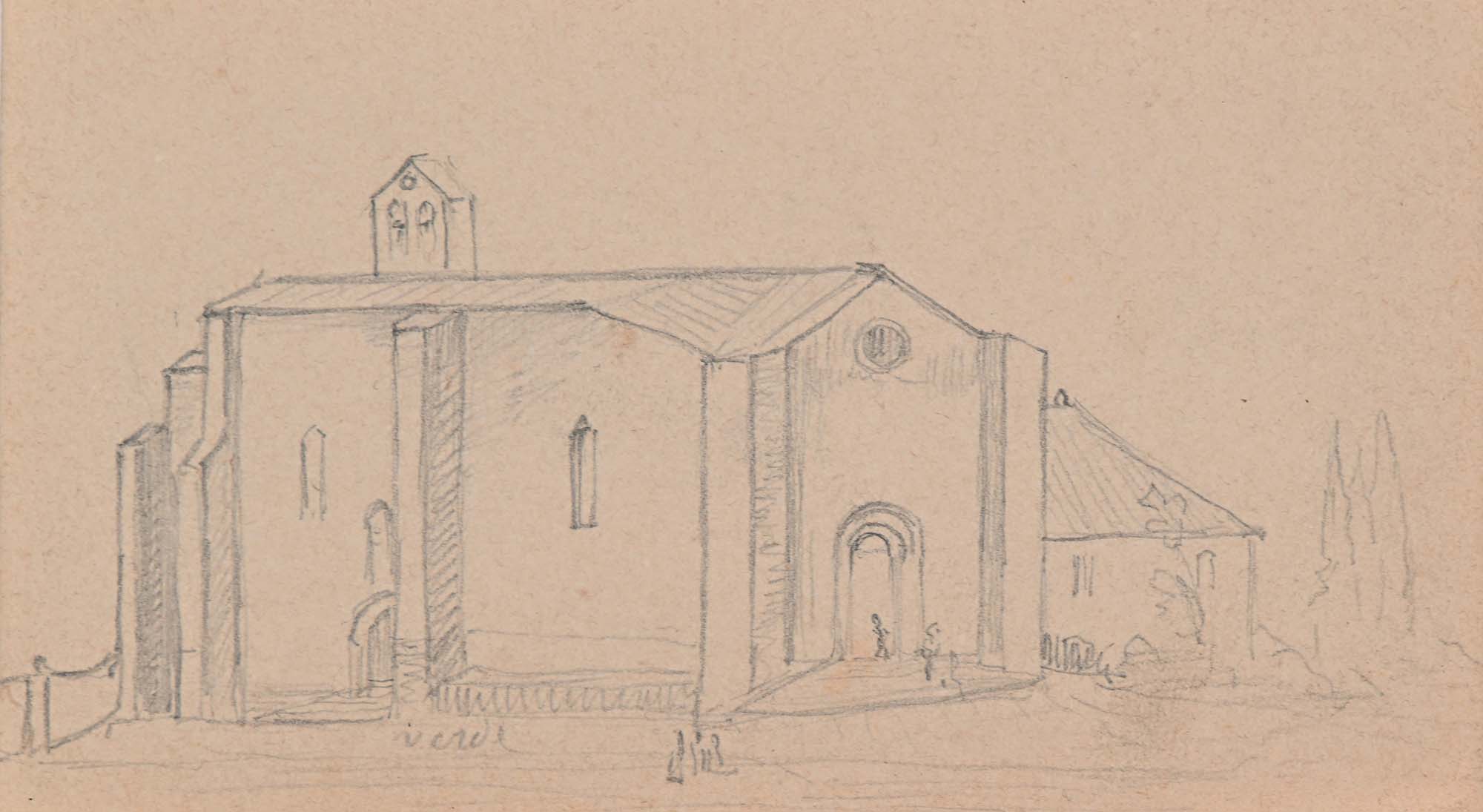 Giovanni (Nino) Costa Roma 1826-Marina Di Pisa 1903 Taccuino di 22 fogli Il Taccuino, relativo a un soggiorno tra Umbria e Marche, reca disegni e pensieri sparsi, l'indirizzo "Lemmo Rossi Scotti via Riaria Palazzo Baglioni Perugia" e le iscrizioni "1880 il di 15 dicembre avevamo 3 questioni da risolvere" e Urbino, S. Angelo, Borgo S. Sepolcro, Città di Castello". matita su carta bruna cm 7,8x13,6 1880 circa