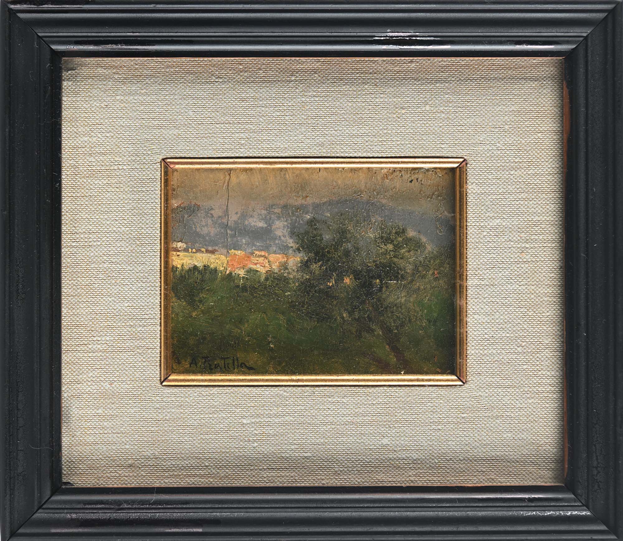 Attilio Pratella Lugo 1856-Napoli 1949 Vomero Firmato in basso a destra "A. Pratella" olio su tavola cm 7,5x10,5 - in cornice cm 19x21