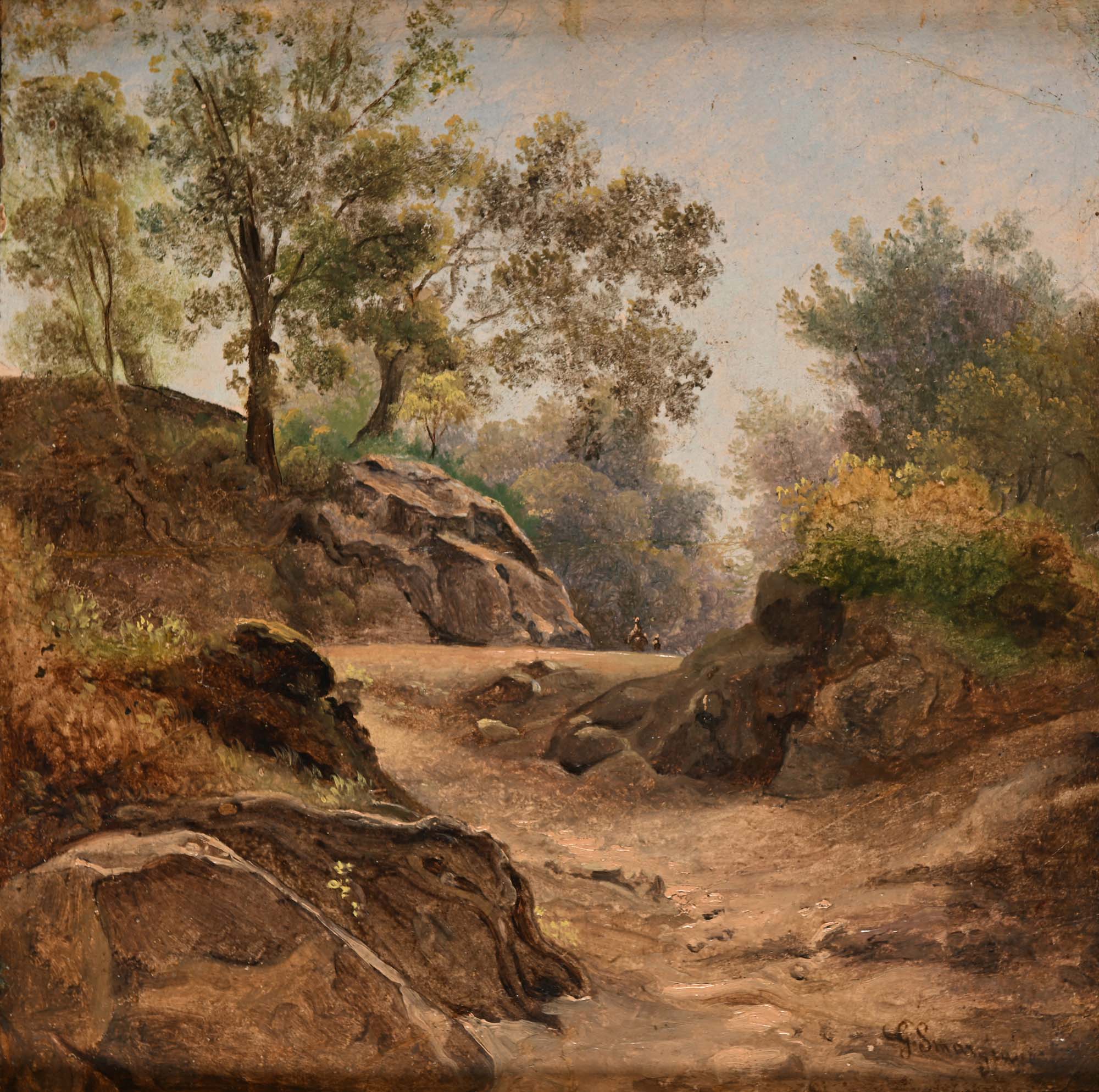 Gabriele Smargiassi Vasto 22/07/1798-Napoli 12/05/1982 Paesaggio Firmato in basso a destra "G. Smargiassi" olio su tavola cm 22x22 - in cornice cm 40x40