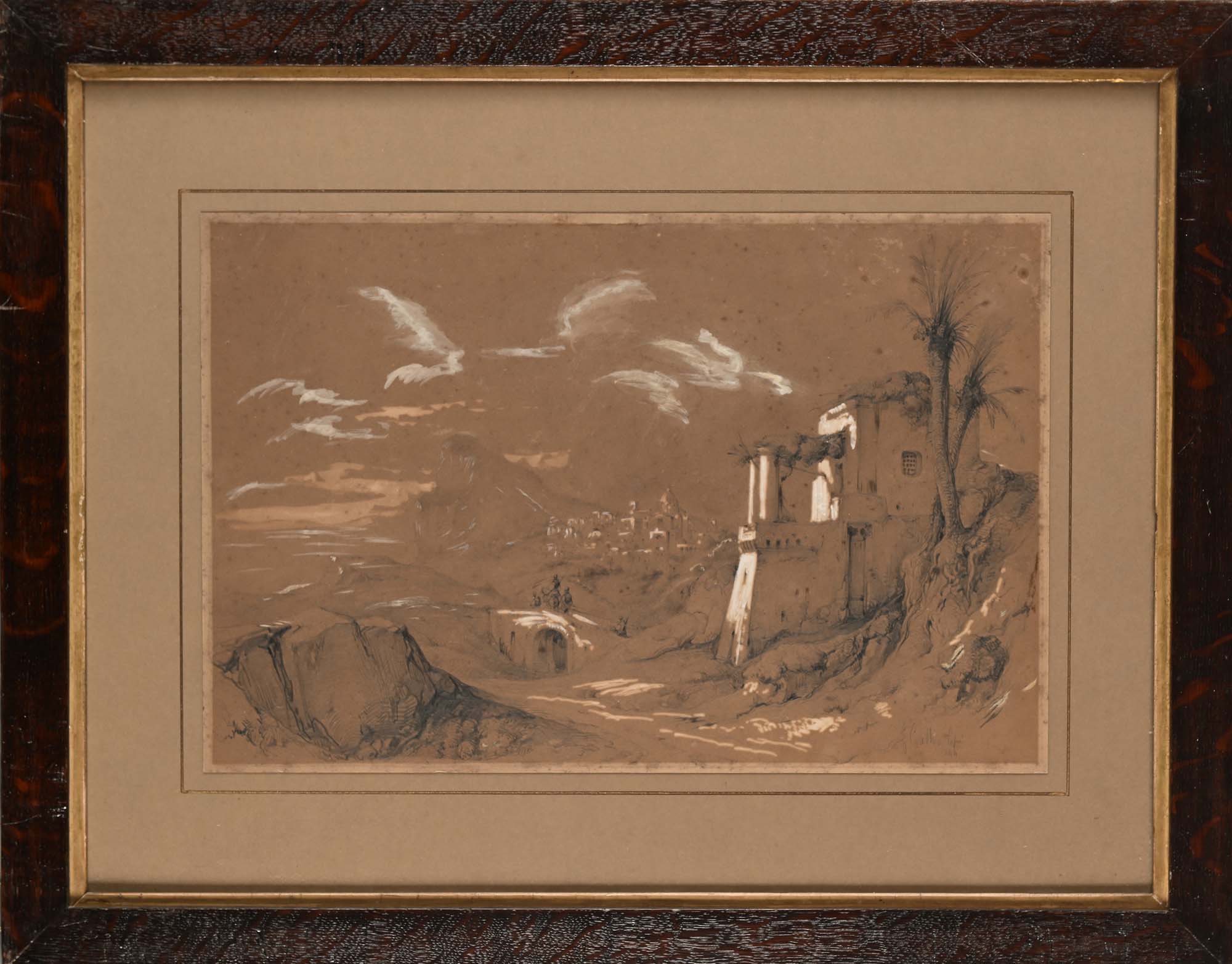 Consalvo Carelli Napoli 1818-Napoli 1900 Veduta di Capri Firmato, datato e titolato in basso a destra: "G. Carelli Capri 1844" matita e tempera su carta marrone cm 26x40 - in cornice cm 47,5x60 1844
