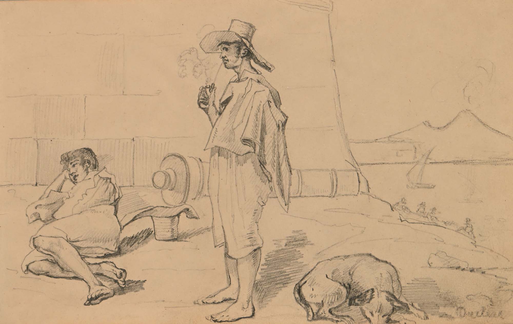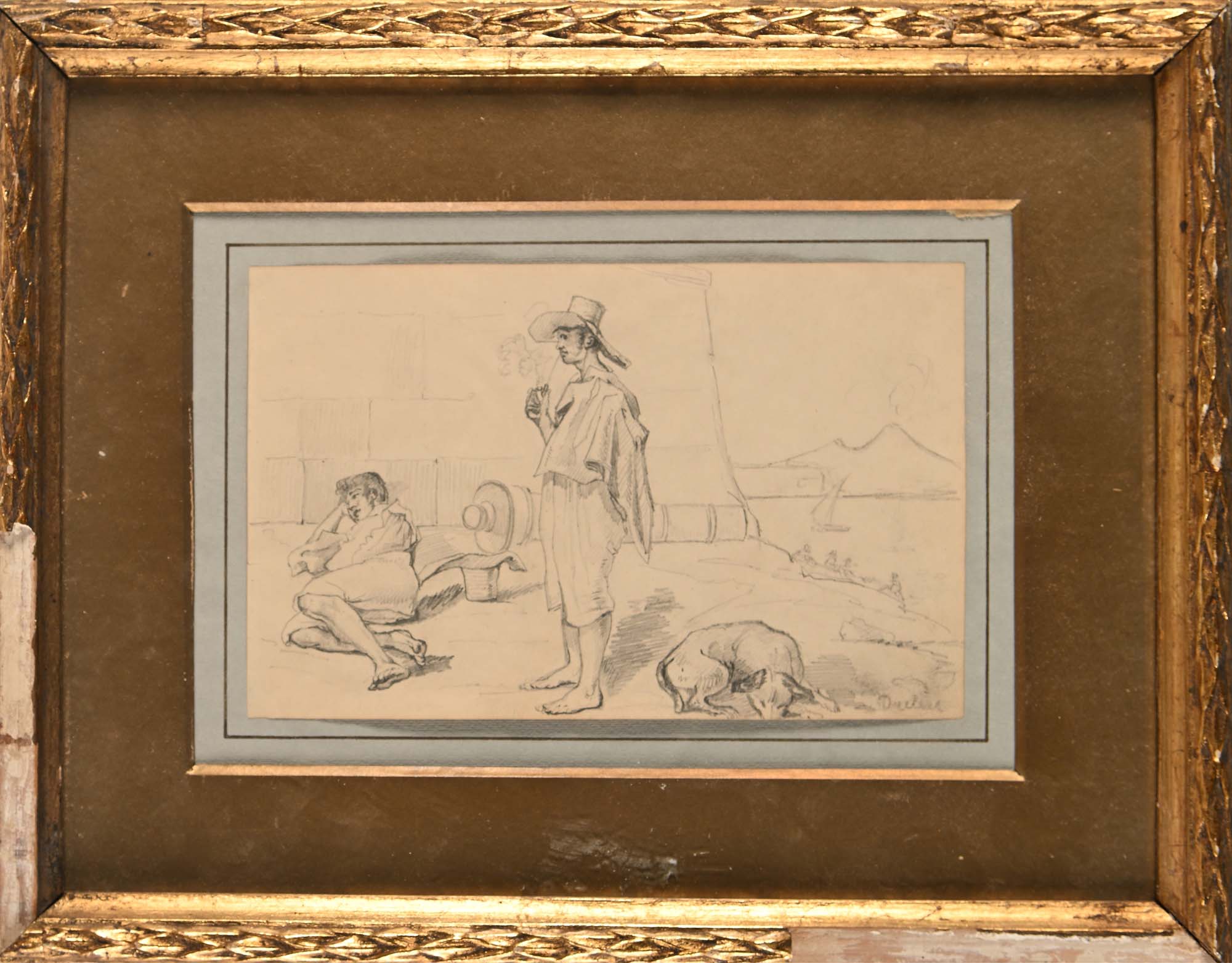 Teodoro Duclère Napoli 1812-Napoli 1869 Figure sullo sfondo del Golfo di Napoli Firmato in basso a destra "Duclere" matita su carta cm 12,5x29 - in cornice cm 27x34,5