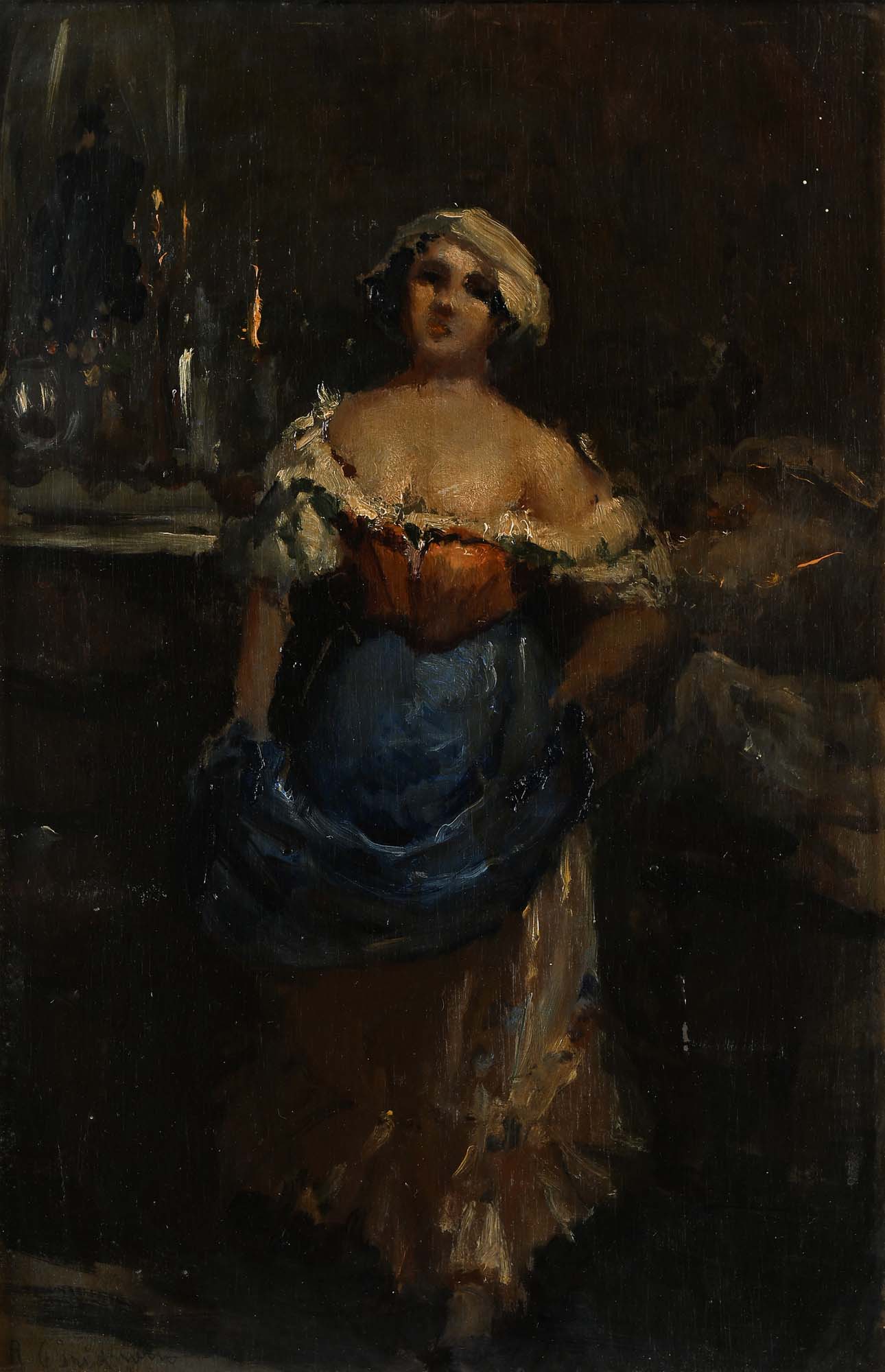 Pittore del XIX secolo Popolana Firma illeggibile in basso a sinistra olio su...