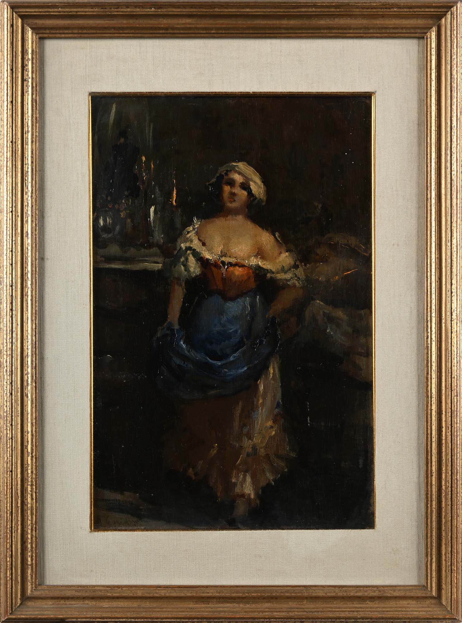 Pittore del XIX secolo Popolana Firma illeggibile in basso a sinistra olio su tavola cm 36x24 - in cornice cm 50x37