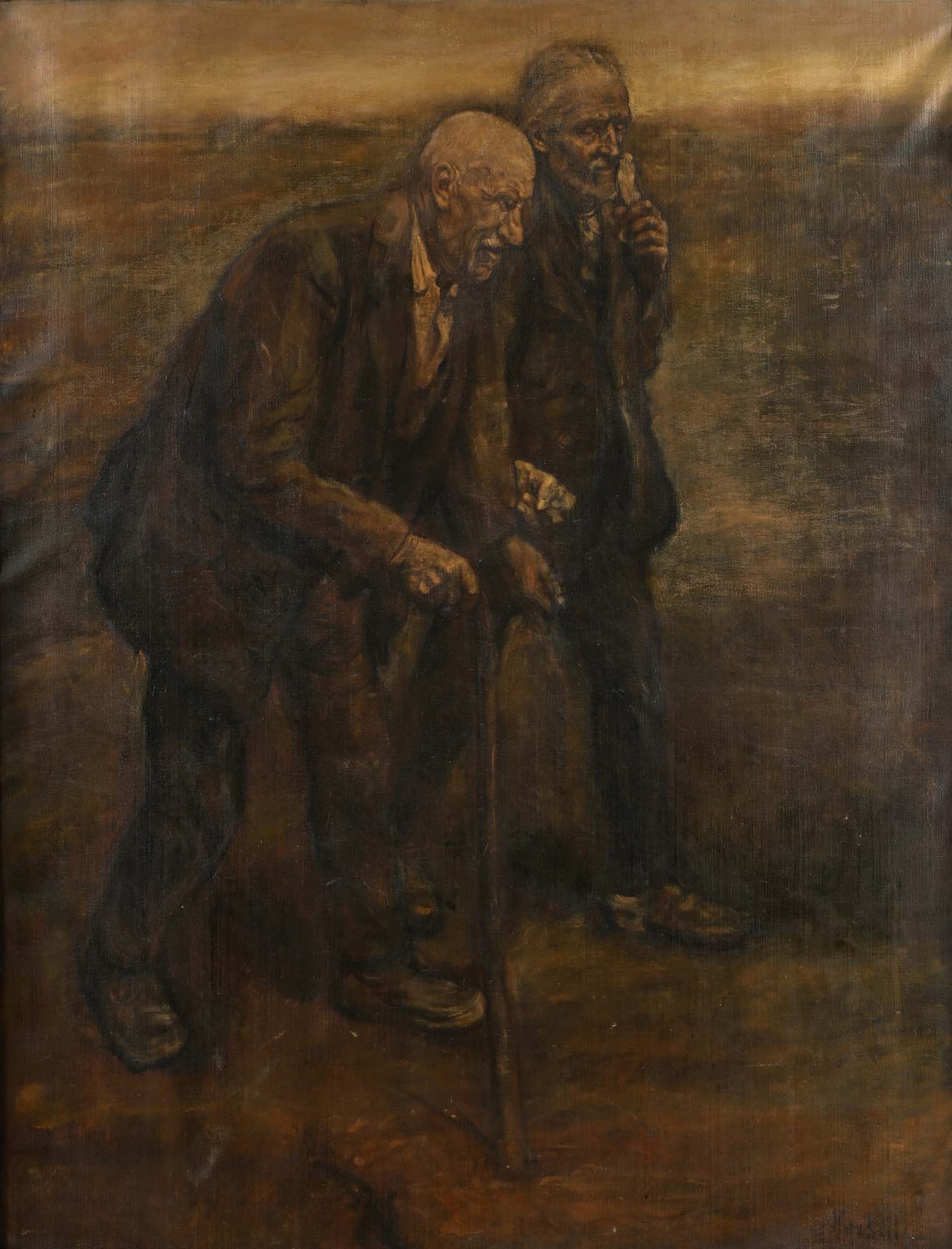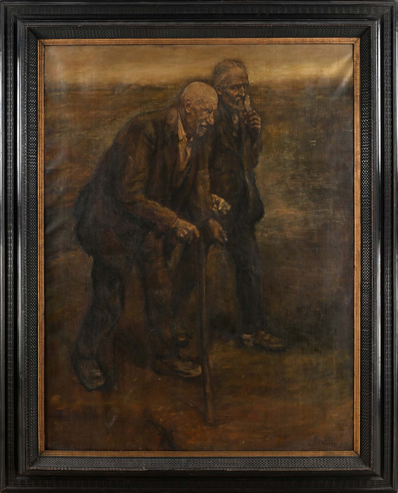 Pittore del XIX secolo La passeggiata Firma illeggibile in basso a destra olio su tela cm 170x130 - in cornice cm 218x170