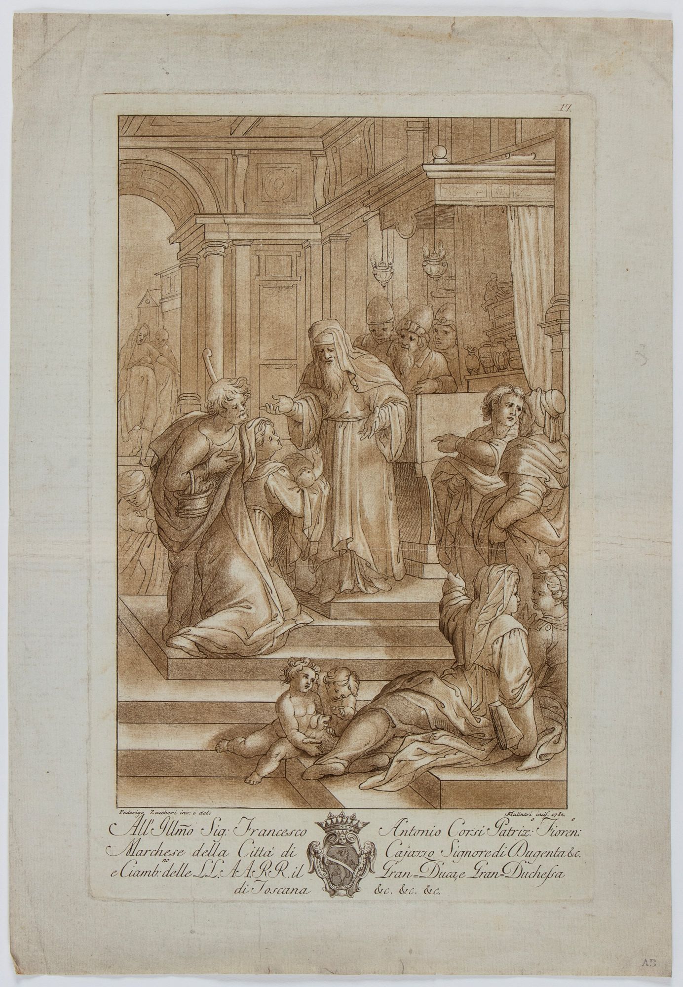 da Federico Zuccaro. Acquatinta in seppia, 335 x 485 mm. Tratta da "Disegni originali d'eccellenti pittori esistenti nella Real Galleria di Firenze", pubblicata a Firenze nel 1774.