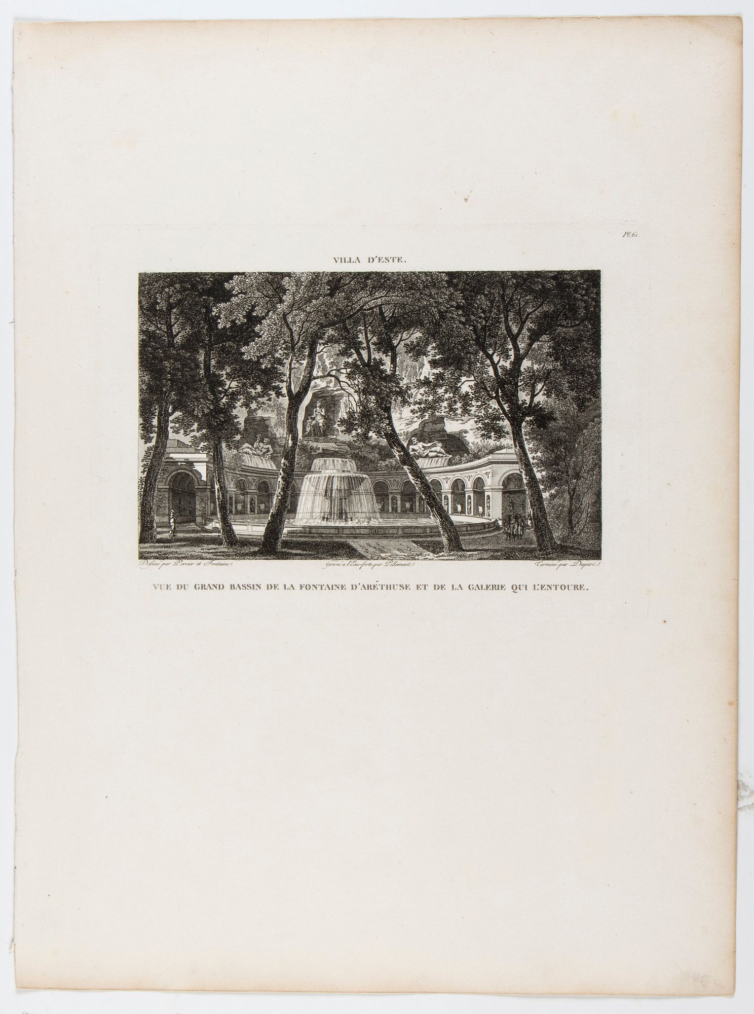 Plan général de la Villa d'Este et de ses jardins | Vue du Grand Bassin de la fontaine d'Aréthuse...