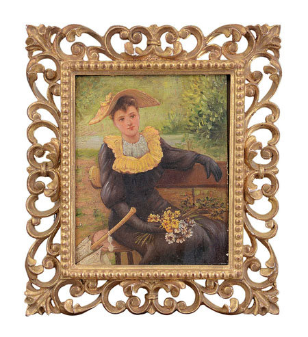 Lotto 474 | ANONIMO XX SECOLO Dama nel parcoolio su tavola cm. 26,2x21,2.