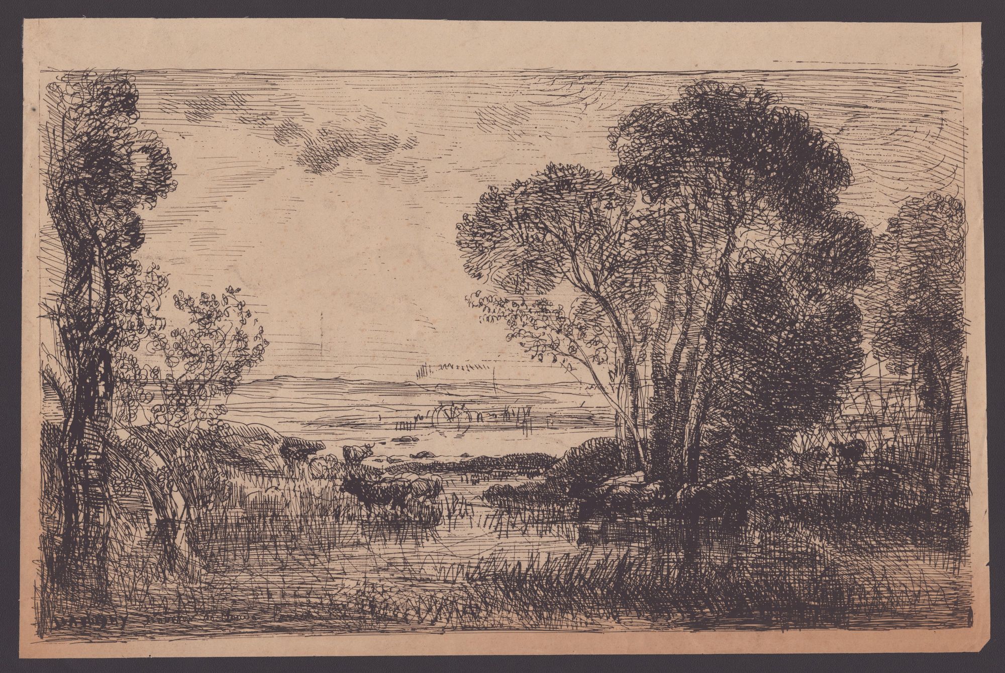 Cliché-verre, 208 x 344 mm (lastra), 237 x 358 mm (foglio). Delteil 147