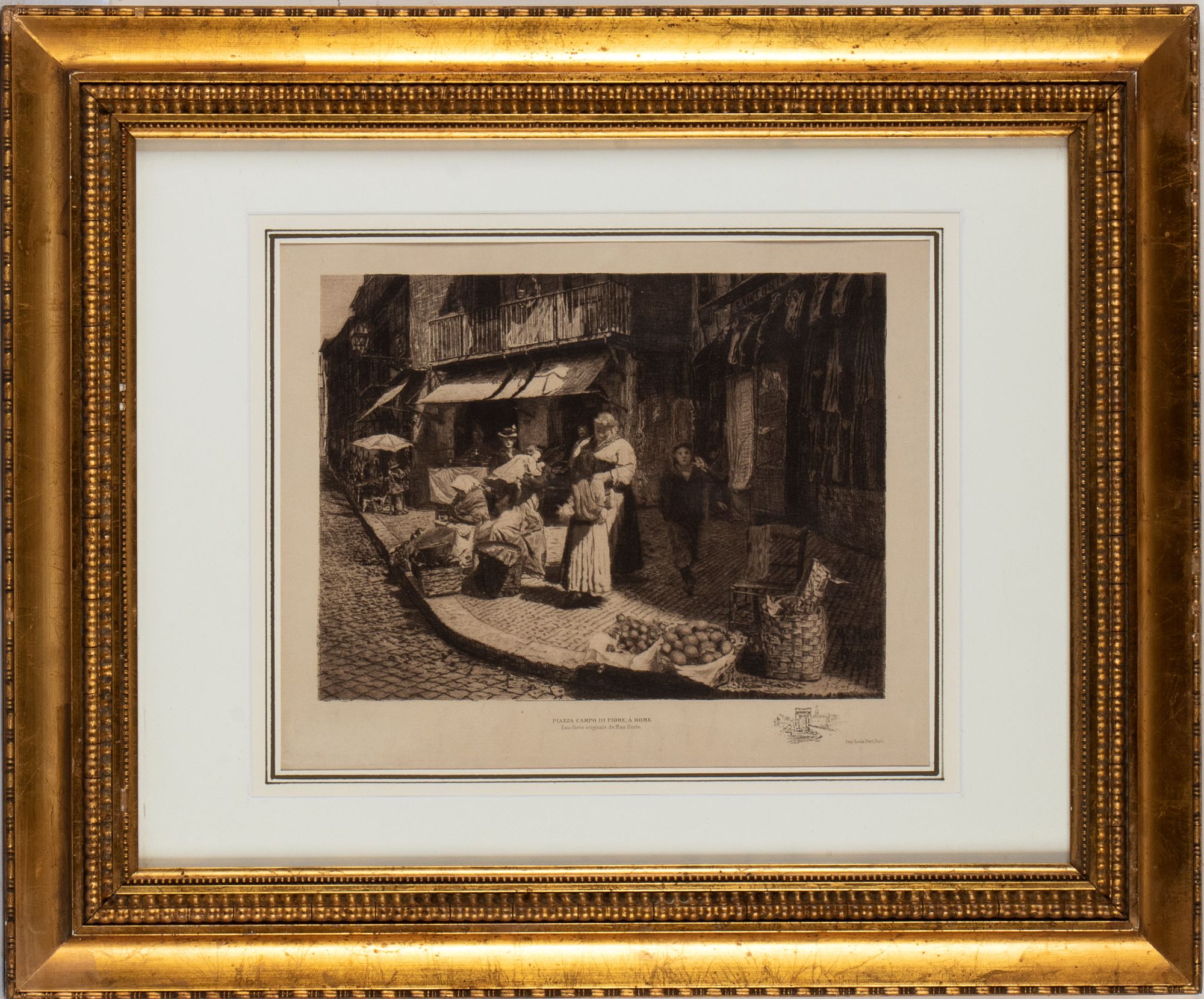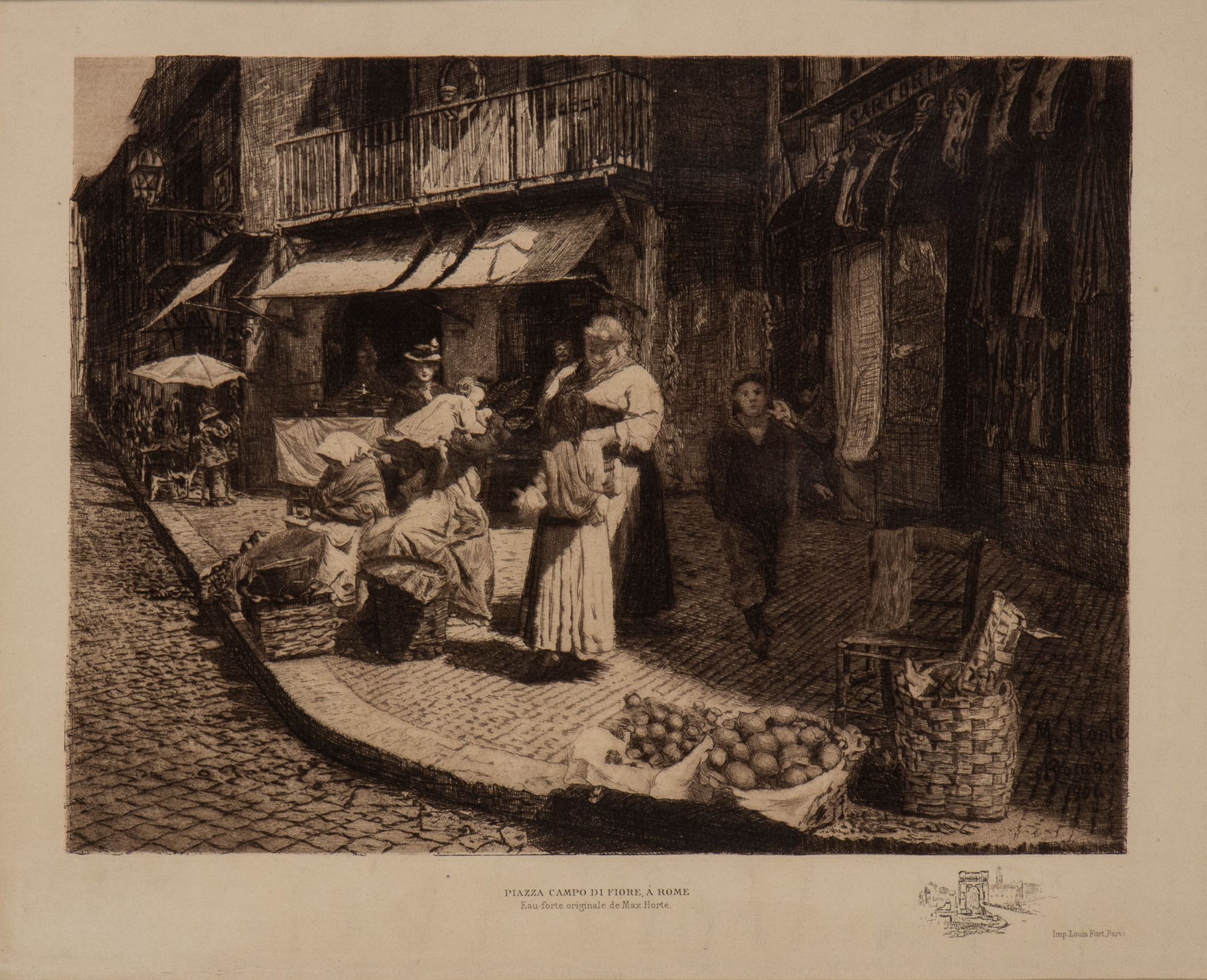 Max Horte (1865 - ?) Piazza Campo de' Fiori a Roma 1901 ca. Acquaforte, 265 x...