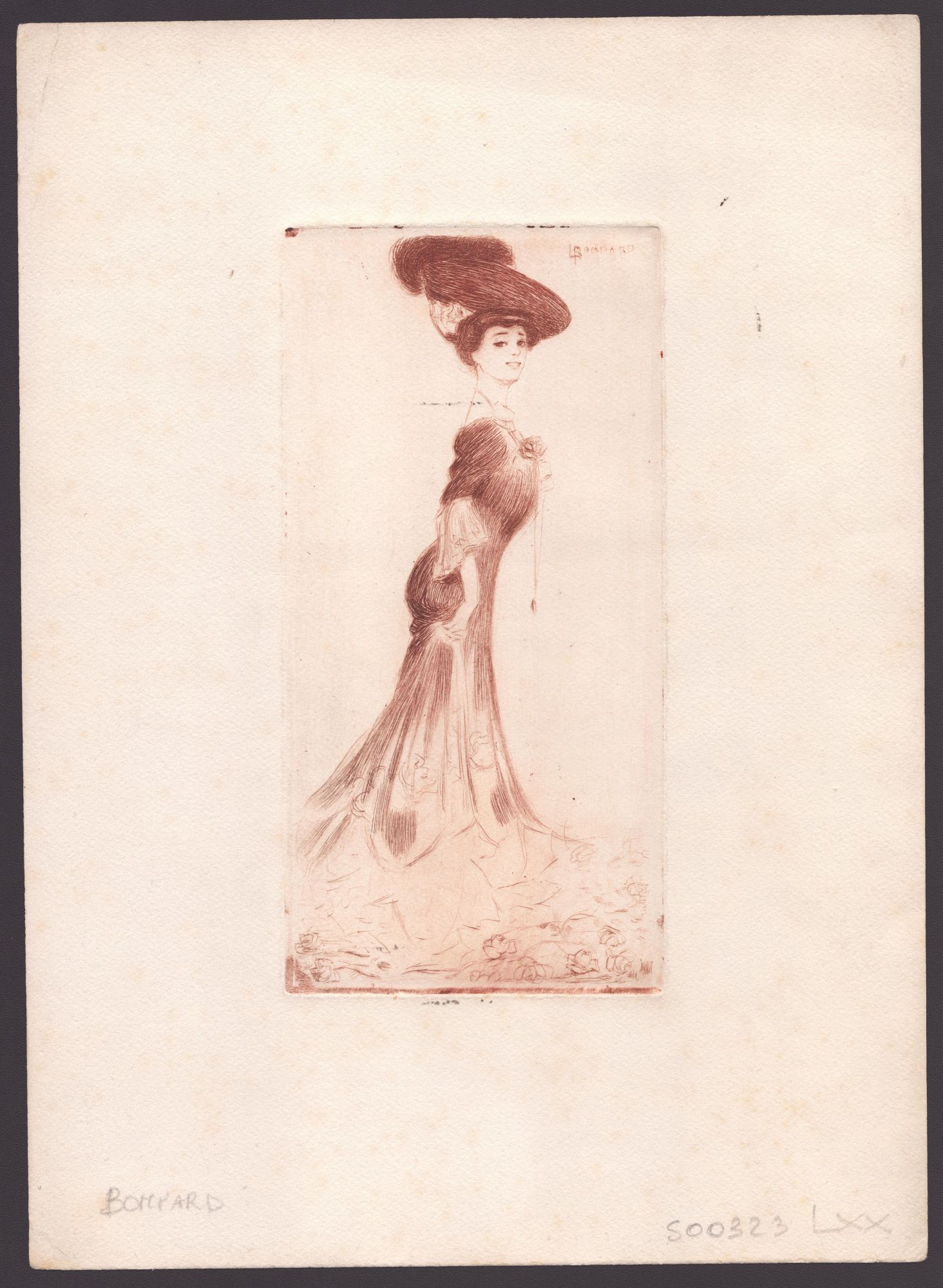 Puntasecca ad inchiostro bruno, 202 x 100 mm (lastra), 330 x 238 mm (foglio). Firmata in lastra.