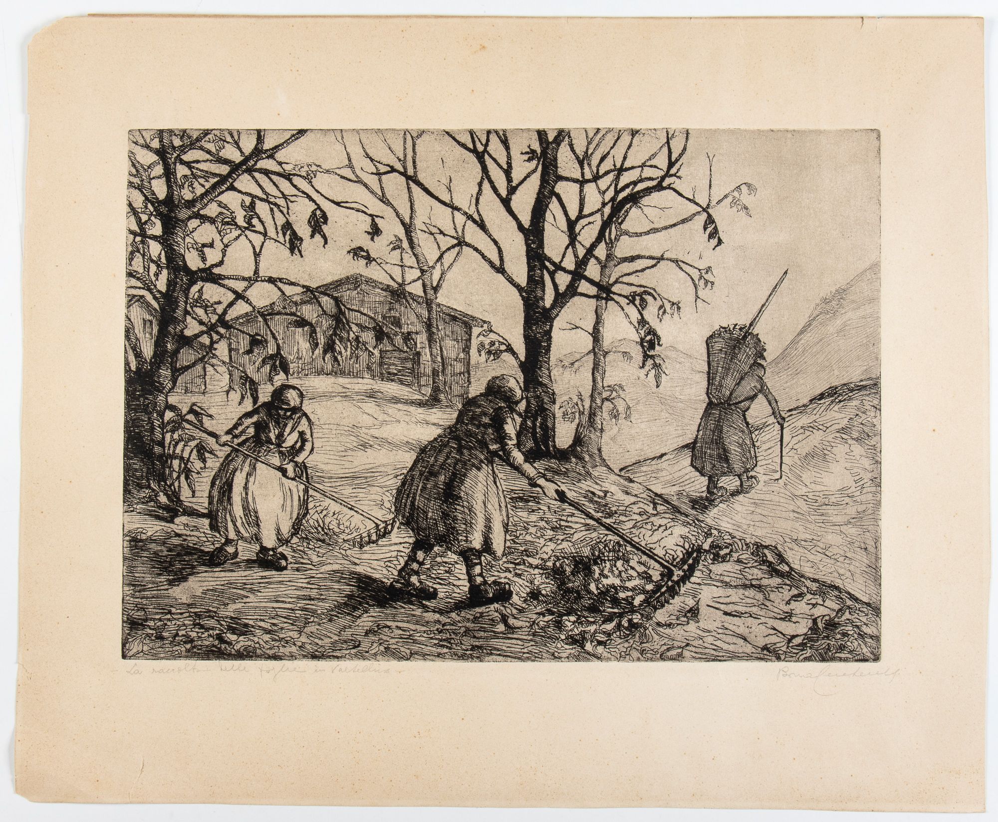 Bona Ceccherelli La raccolta della foglie in Valtellina Acquaforte, 325 x 455...