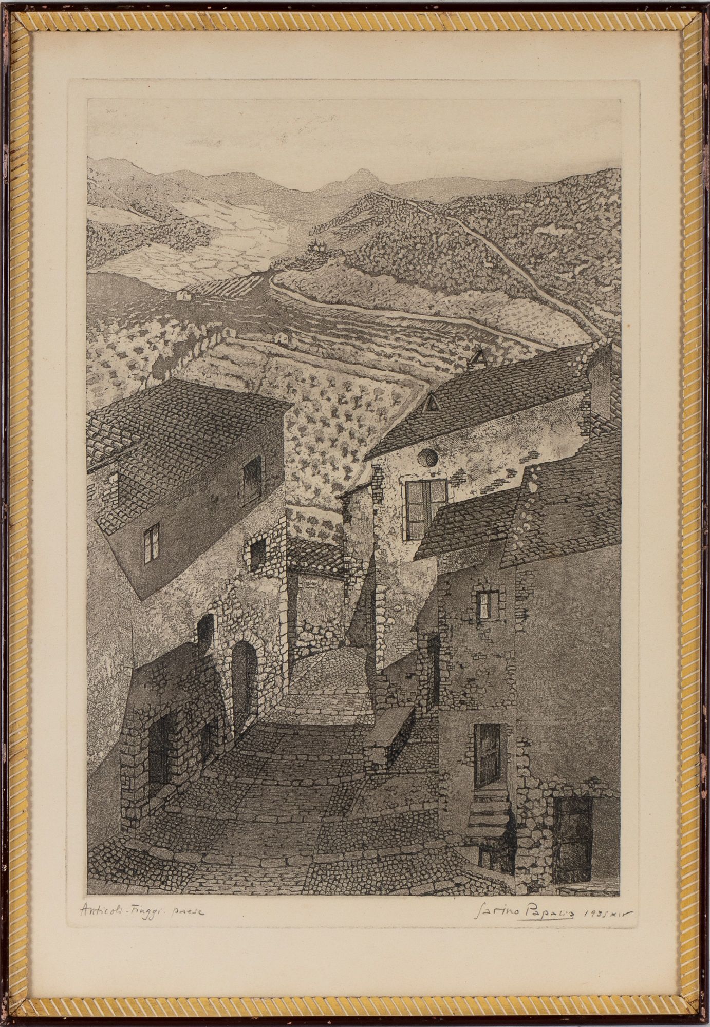 Sarino Papalia (1897 - 1958) Anticoli Fiuggi paese 1935 Acquaforte e...