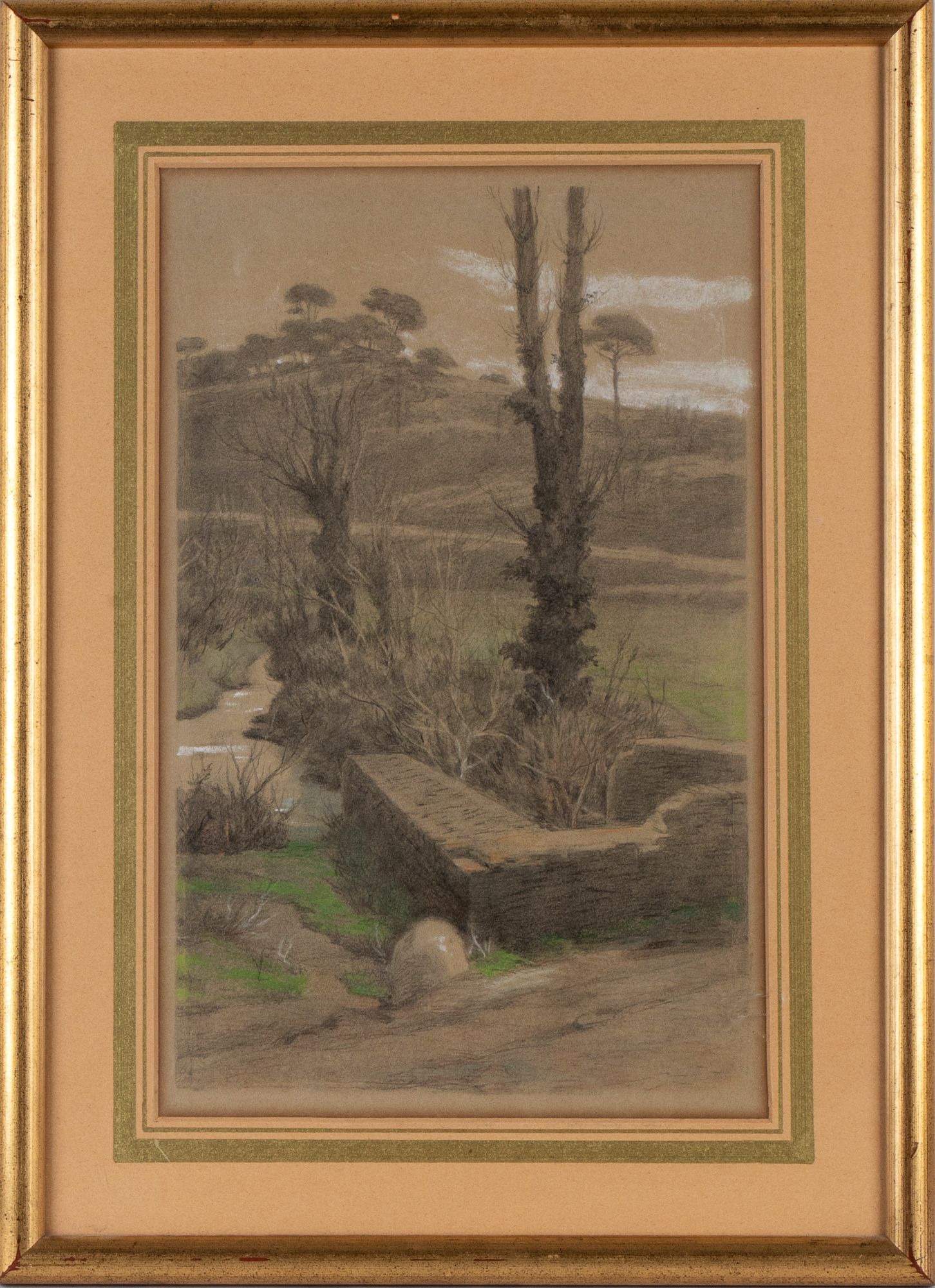 ETTORE FERRARI (Roma, 1845 - 1929) Villa Gloria, il lago 1905 Pastello e...