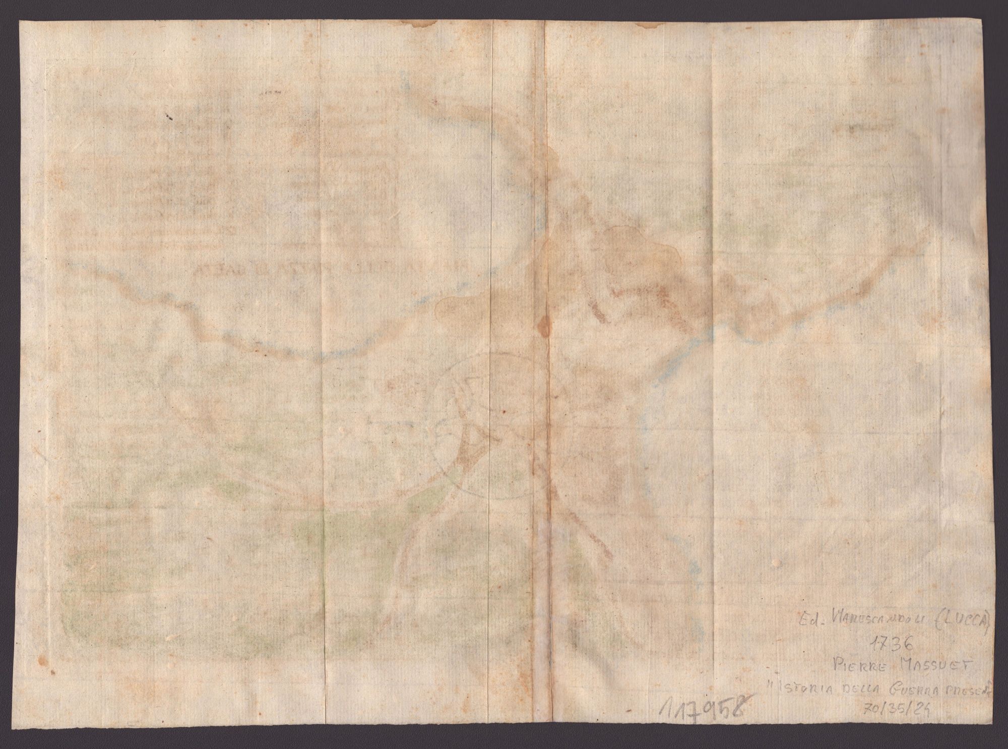 Acquaforte, 218 x 305 mm (foglio). Pianta di Gaeta tratta da "Istoria della guerra presente che contiene quanto è occorso di più importante in Italia, nel Reno, in Polonia..." di Pierre Massuet.