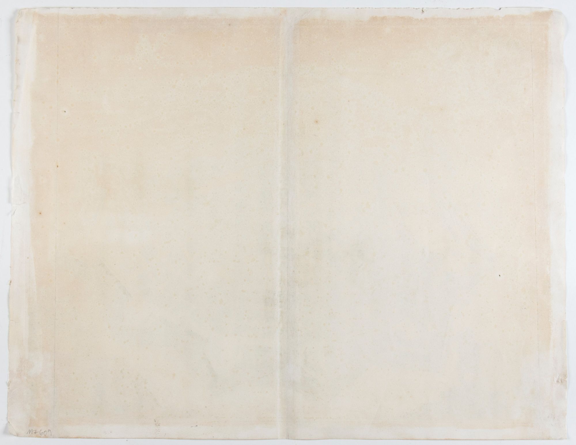 Bella impressione su carta vergata con grande filigrana. Buono stato di conservazione, salvo scolorimento da esposizione, alcune leggere macchie e usure lungo i bordi. Traccia della consueta piega editoriale.