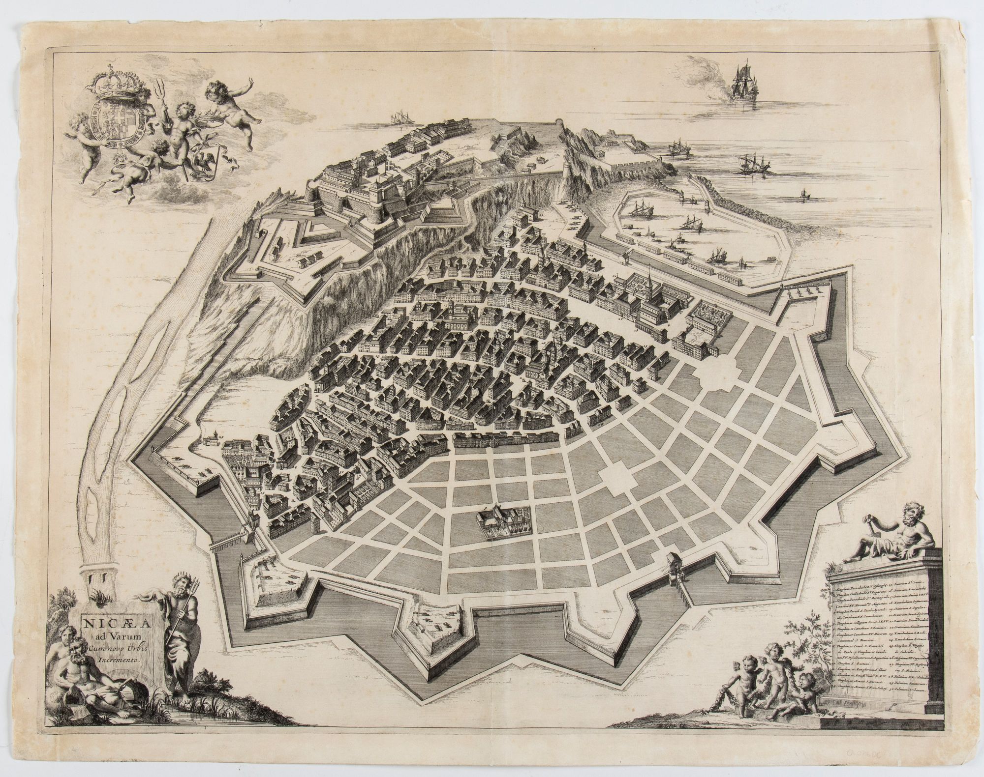 Acquaforte e bulino, 525 x 670 mm (foglio). Veduta di Nizza tratta da "Theatrum. Statuum Sabaudiae"