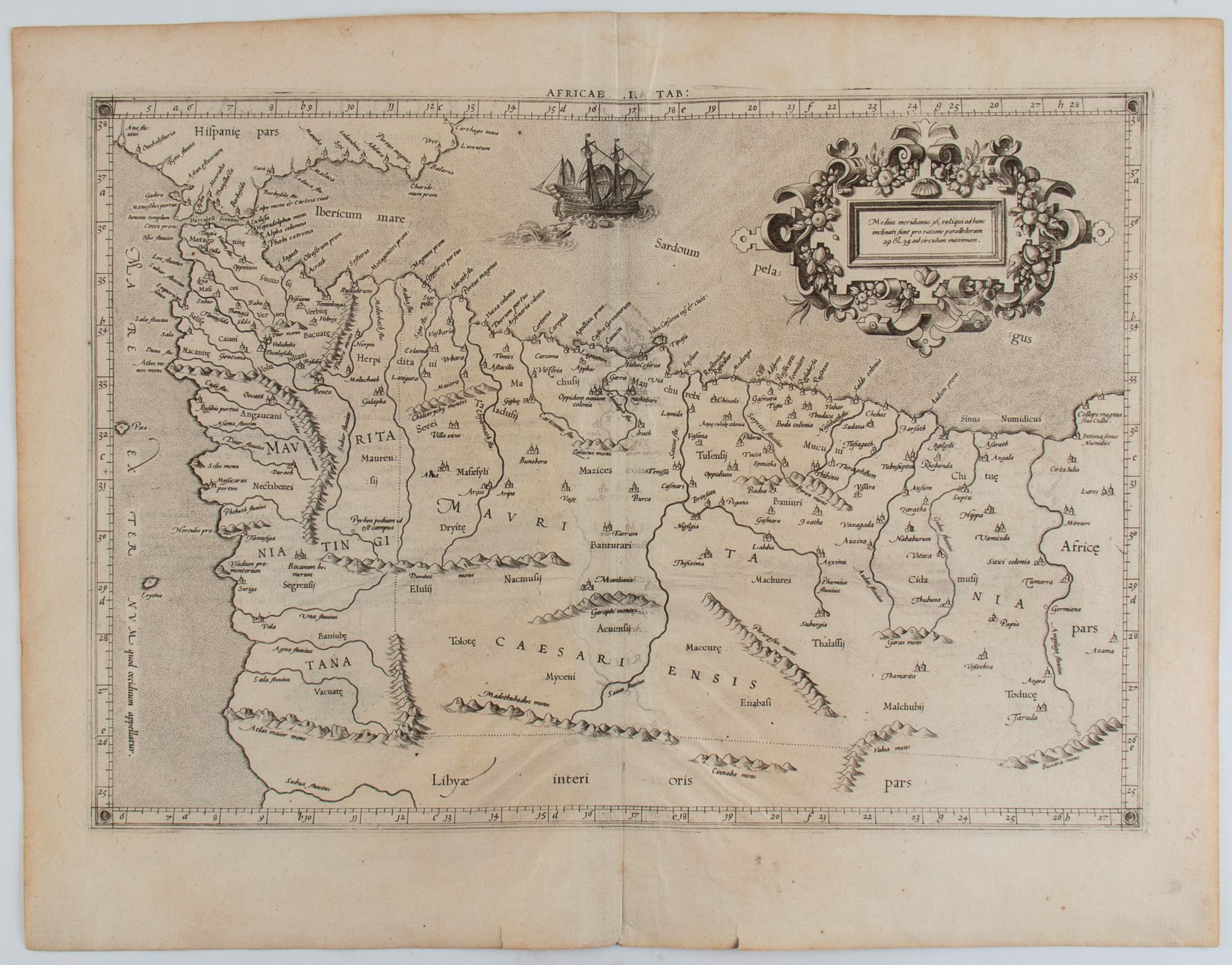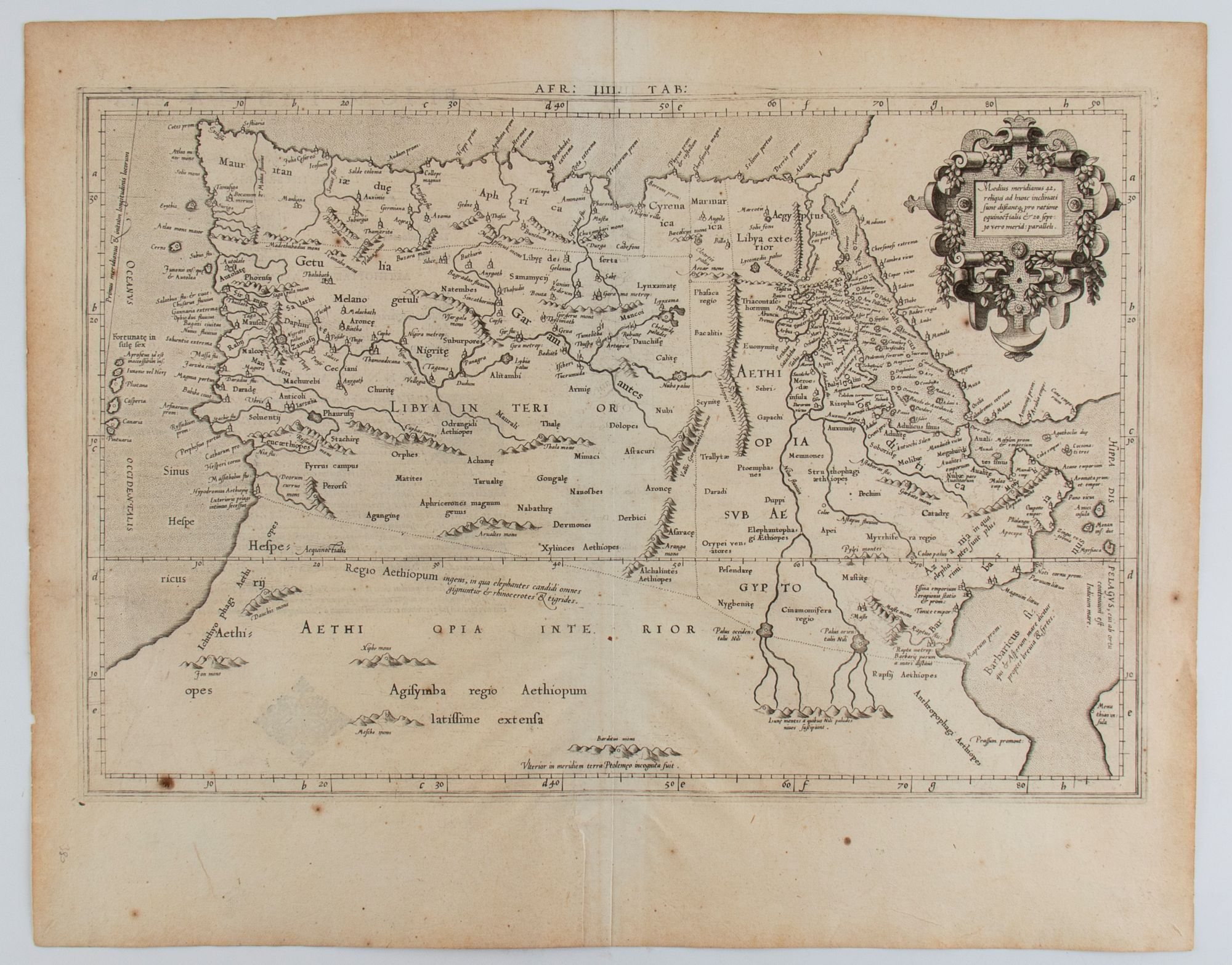 Acquaforte e bulino, 410 x 510 mm ca. cad. foglio. Lotto di due mappe dell'Africa di Mercator, basate sul lavoro di Tolomeo, con i territori di Marocco e Tunisia (tab. I) e Libia ed Etiopia (tab. III).