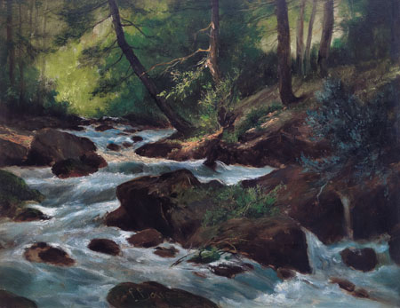 BOSSO FRANCESCO Vercelli 1864 - Torino 1933Ruscello nel boscoolio su cartone...