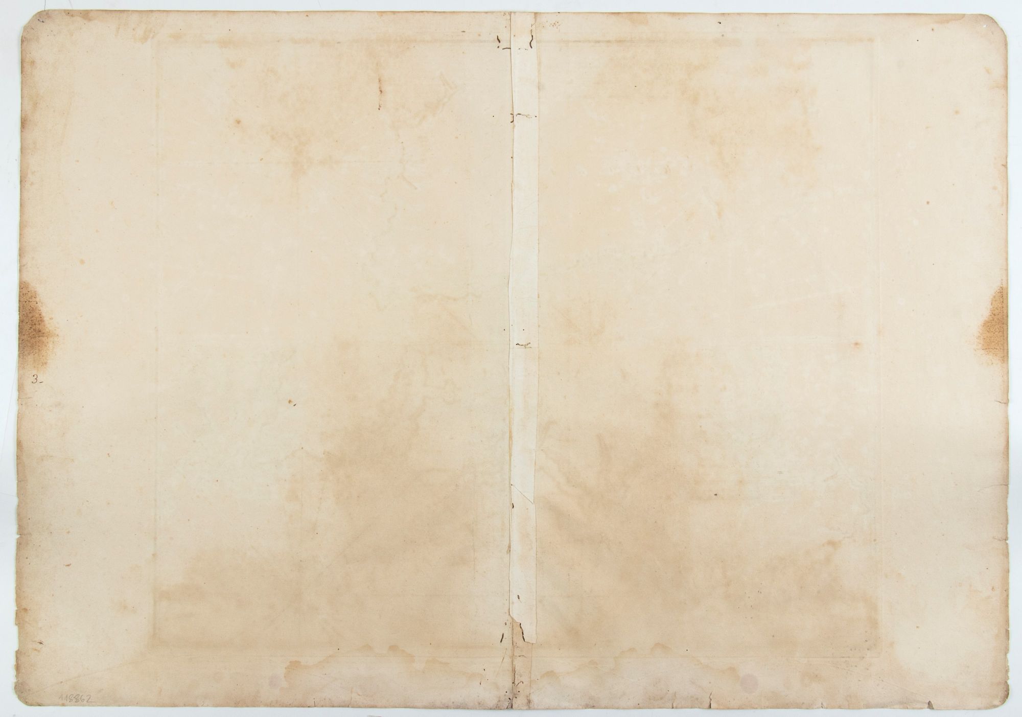 Acquaforte e bulino, 610 x 870 mm circa. Stampata su carta vergata, con consueta piega editoriale. Carta brunita, con alcune macchie, fori e usure lungo i margini.