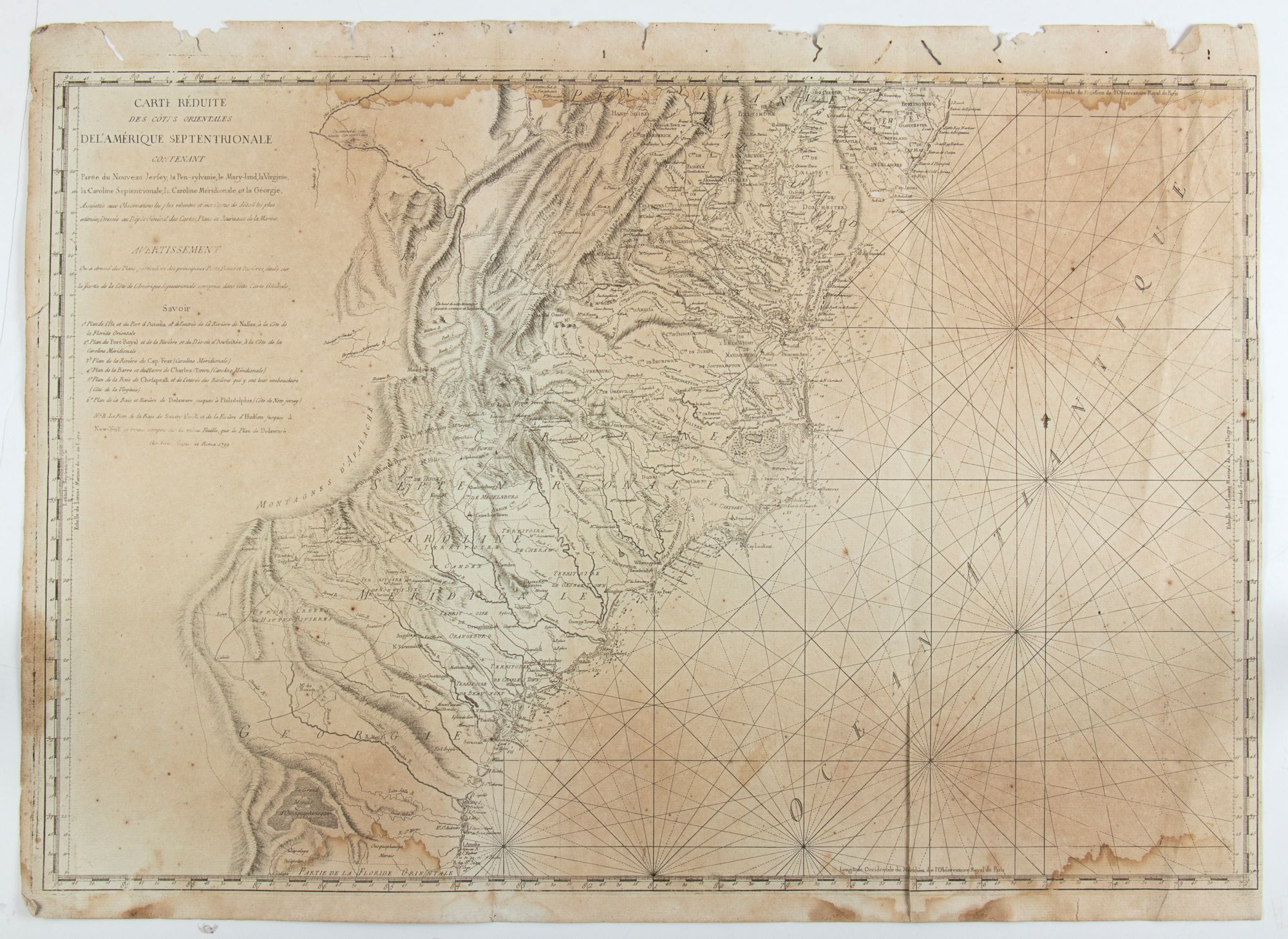 Carte Reduite des Cotes Orientales De L'Amerique Septentrionale Contentant Partie du Nouveau Jersey, la Pen-sylvanie, le Mary-land, la Virginie, la Caroline Septentrionale, la Caroline Meridionale et la Georgie... Roma 1799