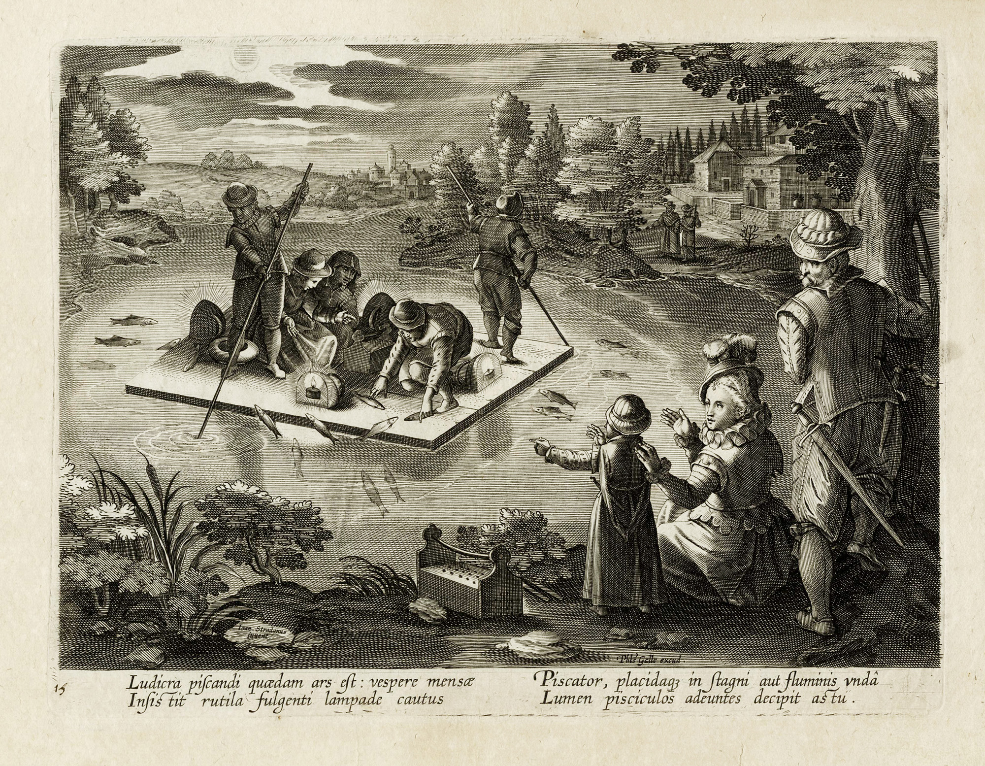 Jan Van der Straet (detto Stradano) [da], La pesca notturna. Antwerp: Phls Galle excud., 1596 e sgg.