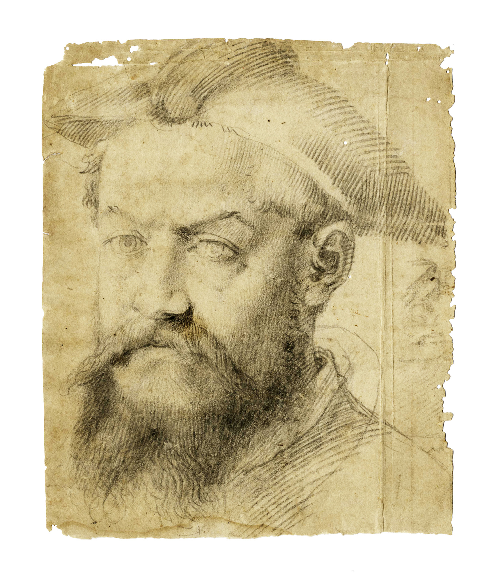 Matita nera su carta color sabbia con filigrana "frecce incrociate sormontate da stella" (simile a Woodward, 193). mm 208x168. Disegno di bella qualità eseguito su carta con filigrana verosimilmente del XVI secolo ma con vergellatura non distinguibile. (1) Traccia di piega verticale parallela al margine destro, segni di tarlo in alto e al margine destro. Alcune fragilità.