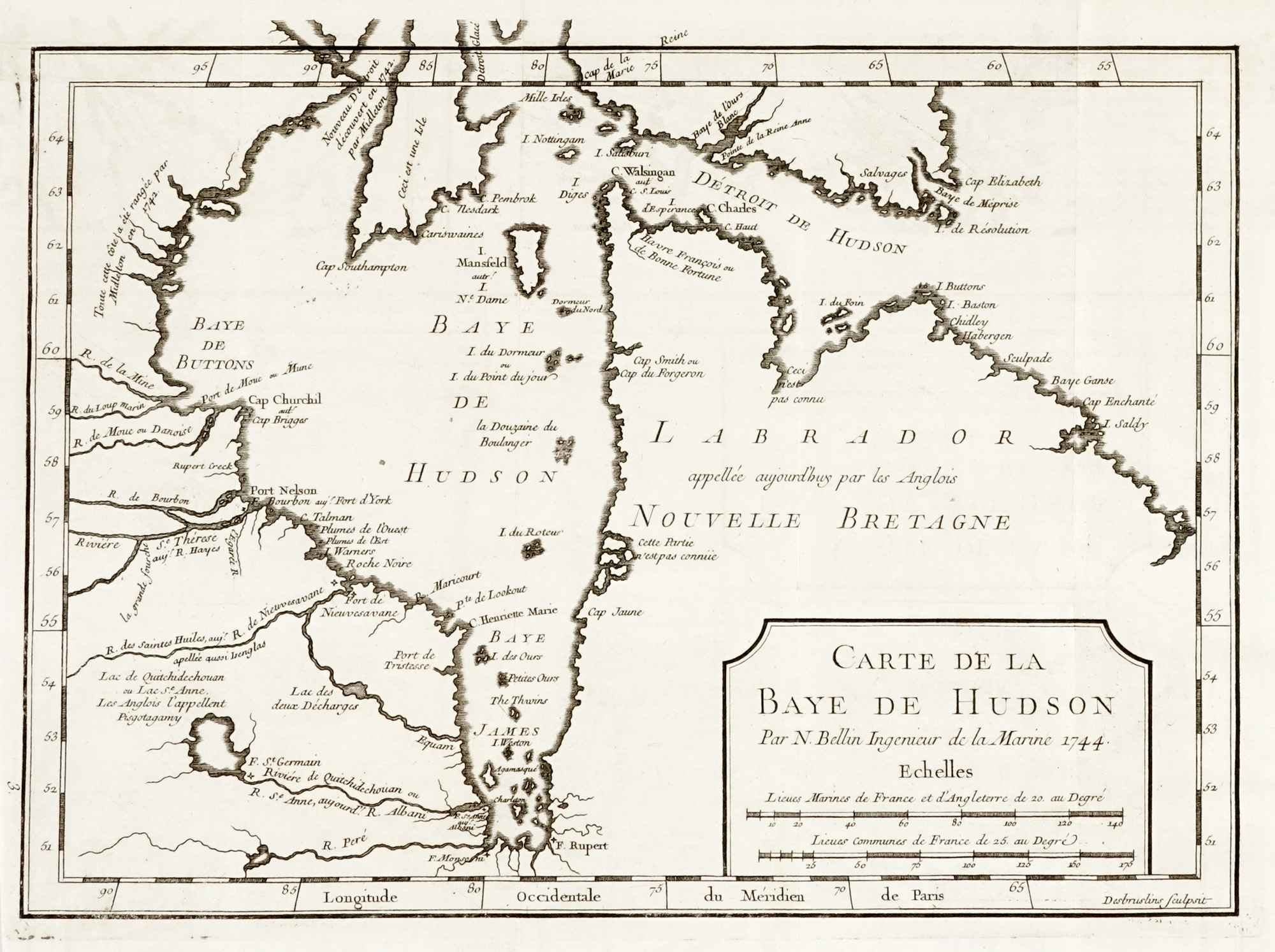 Jacques Nicolas Bellin François-Julien Desbrulins, Carte de la Baye de Hudson. A Paris: Chez la veuve Ganeau, 1744.
