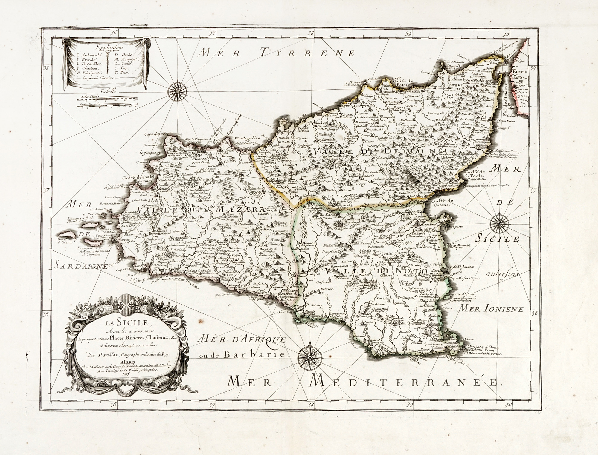 Pierre Duval, La Sicile Avec les anciens noms de presque toutes ses Places, Rivieres, Chasteaux, & c. et diverses observations nouvelles. A Paris: Chez l'Autheur, 1675.