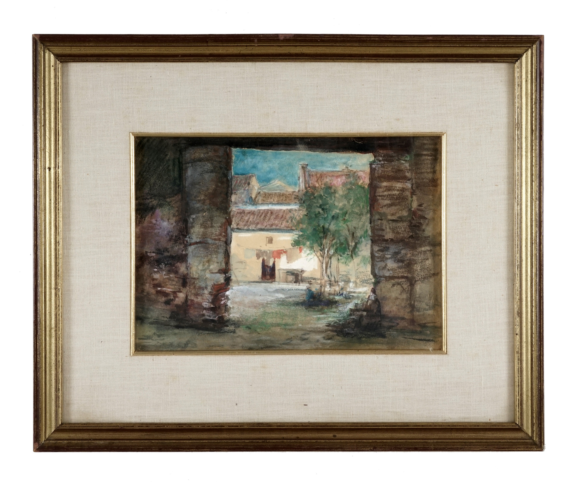 Mariano Fortuny y Madrazo, Scorcio di paese. Acquerello, pastello grasso,...