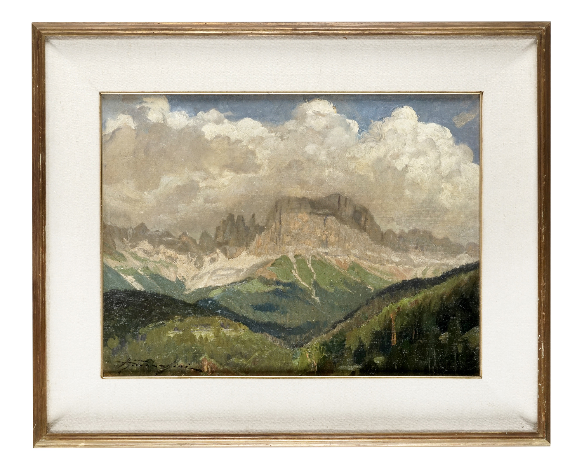 Olio su masonite. cm 37x50. Firmato in basso a sinistra. Spendendo gli ultimi anni di vita a Bolzano, il gruppo del Catinaccio (o Rosengarten in tedesco) verrà rappresentato più volte nell'operato pittorico di Giovacchini. (1) In cornice lignea: cm 53,5x65. Una piccola caduta di colore presso la firma in basso a sinistra, altrimenti ottima conservazione.