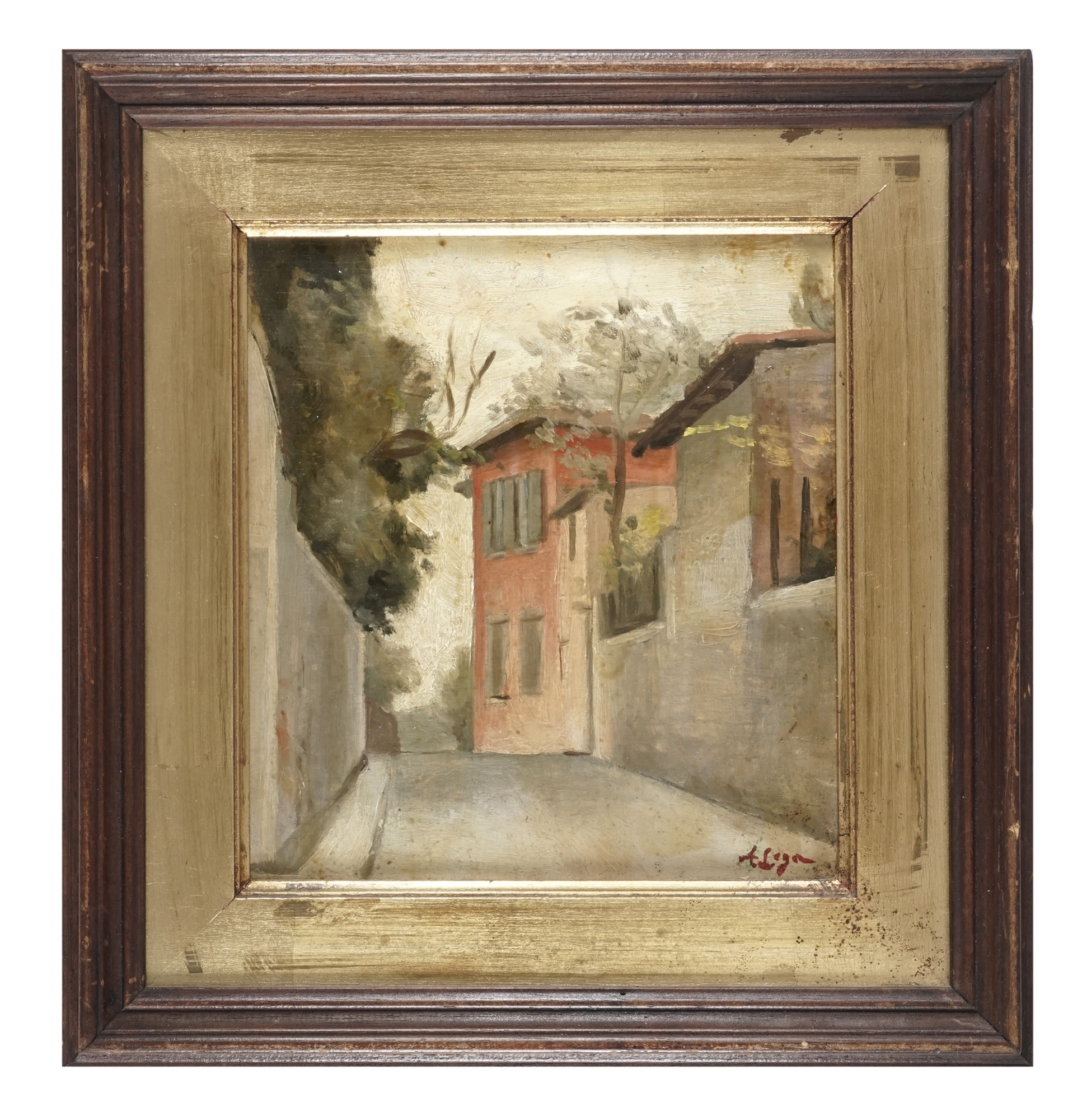 Achille Lega, Via delle Forbici. 1926. Olio su tavoletta. cm 20x18. Firmato...