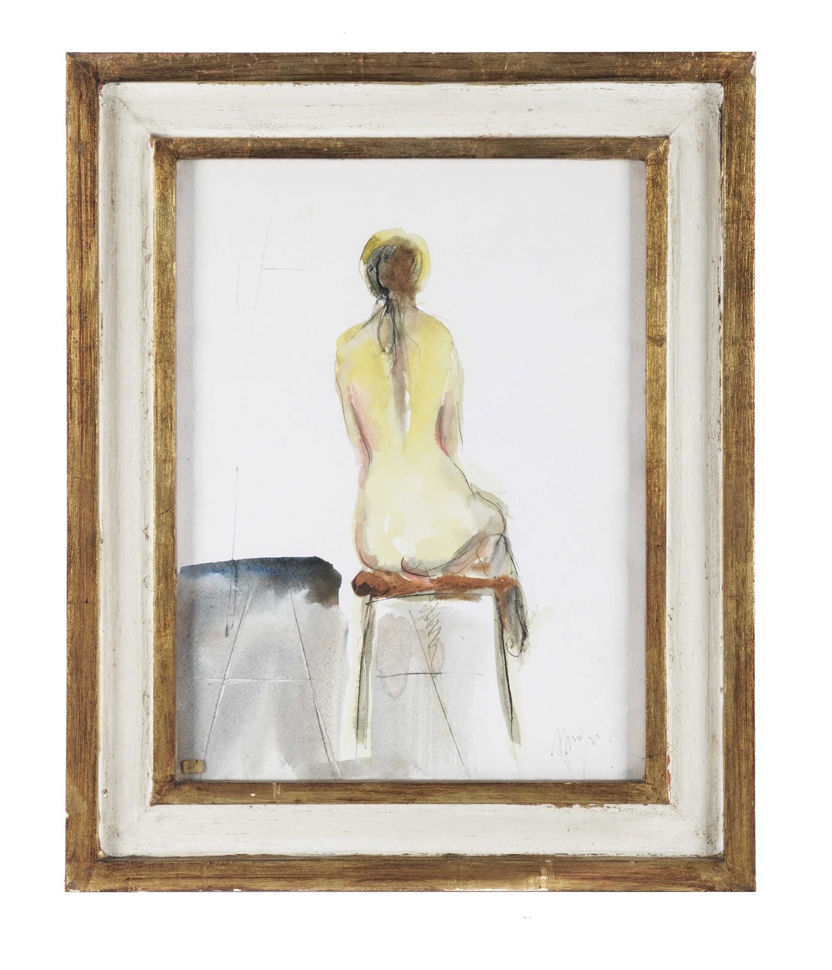 Penna e inchiostro di china e acquerello su carta. mm 385x285 (visibile). Firmato a pastello bruno in basso a destra. (1) In cornice con vetro: cm 52x42. Minimi difetti al margine superiore, altrimenti ottima conservazione.