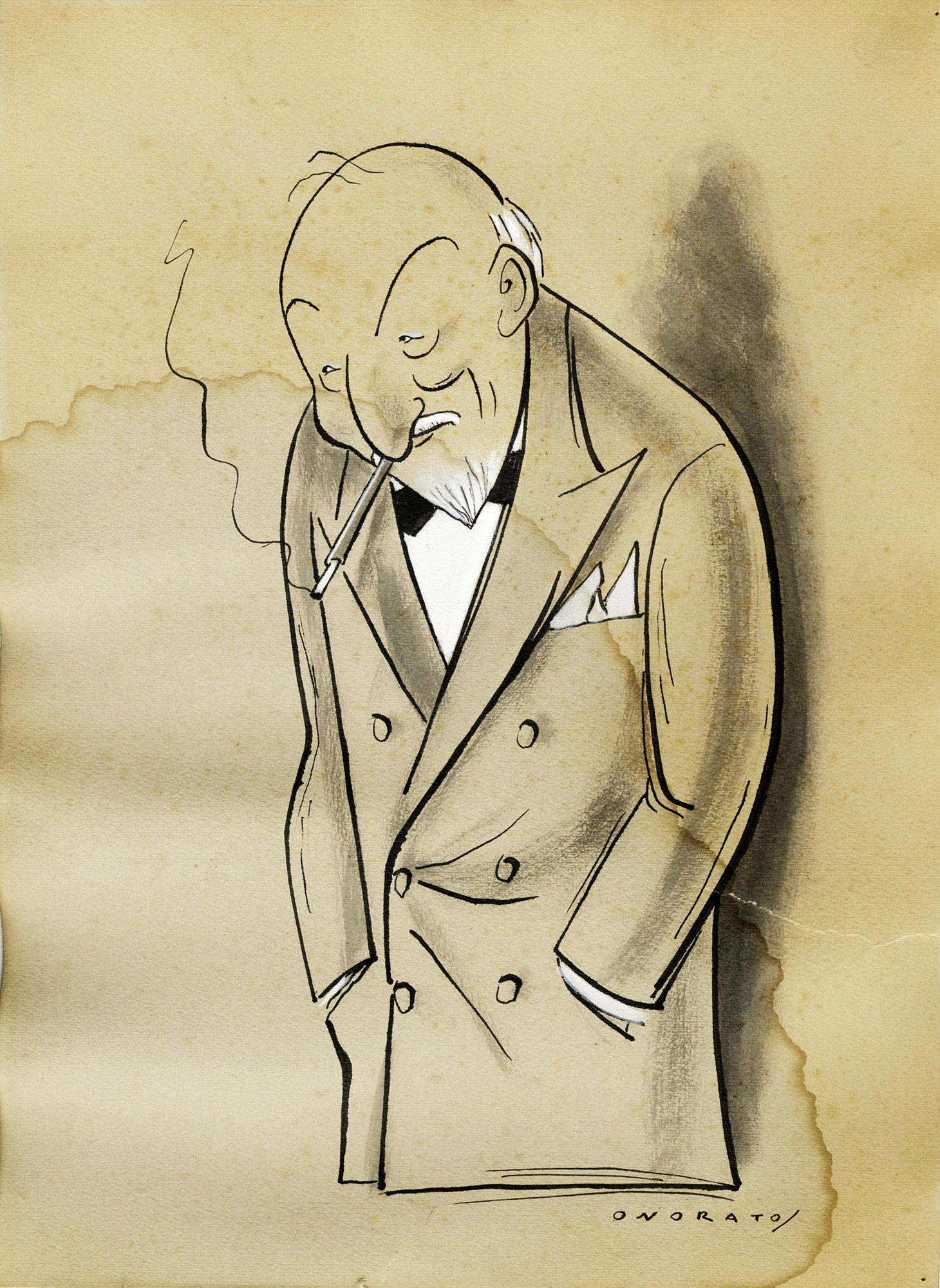 Raccolta di 4 Pennarelli e inchiostro di china, carboncini e acquerelli su cartone. mm 410x300 cad. Ognuno recante la firma al margine inferiore ed i personaggi ritratti iscritti a matita sul verso dei supporti. Compongono il lotto le caricature di Irma Grammatica, Armando Falconi, Wanda Capodaglio e Luigi Pirandello. (4) L'opera ritraente Pirandello presenta uno strappo al margine destro ed una gora al margine sinistro. Le altre opere hanno minime tracce d'uso ma nel complesso ottima conservazione.