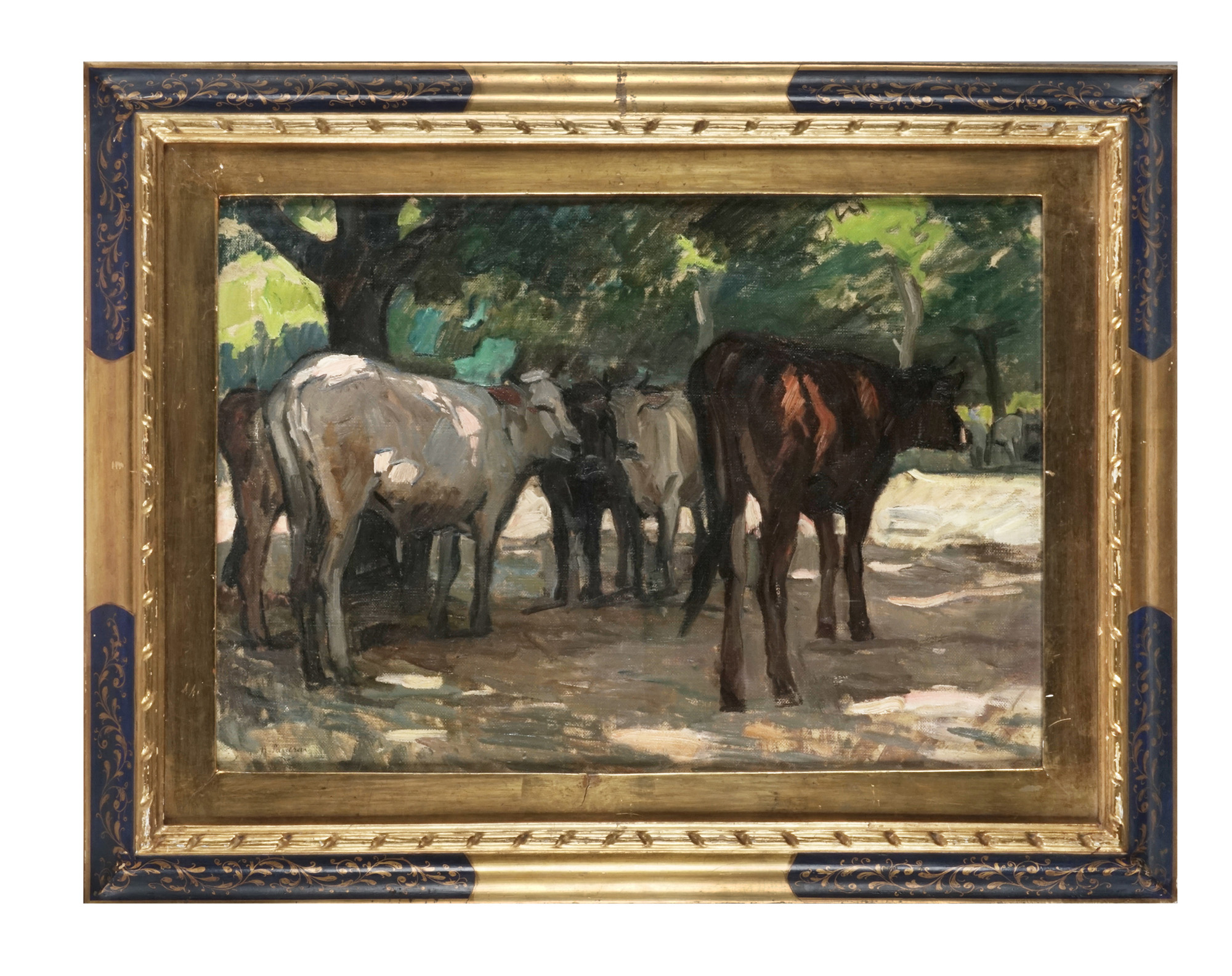 Ruggero Panerai, Mucche. Olio su tela. cm 38x55. Firmato in basso a sinistra....