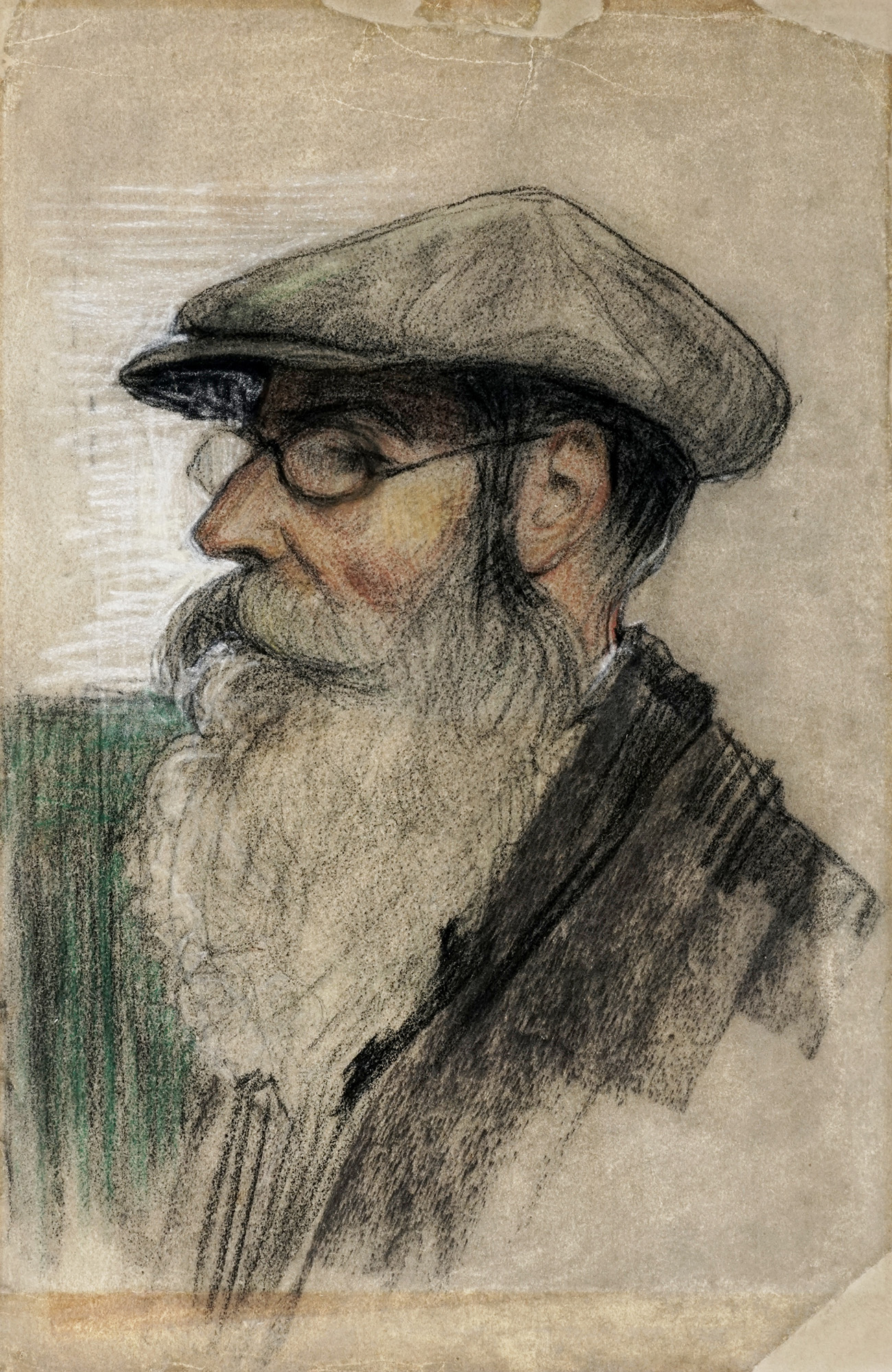 Adolfo Scarselli, Ritratto maschile di profilo con cappello e occhiali....