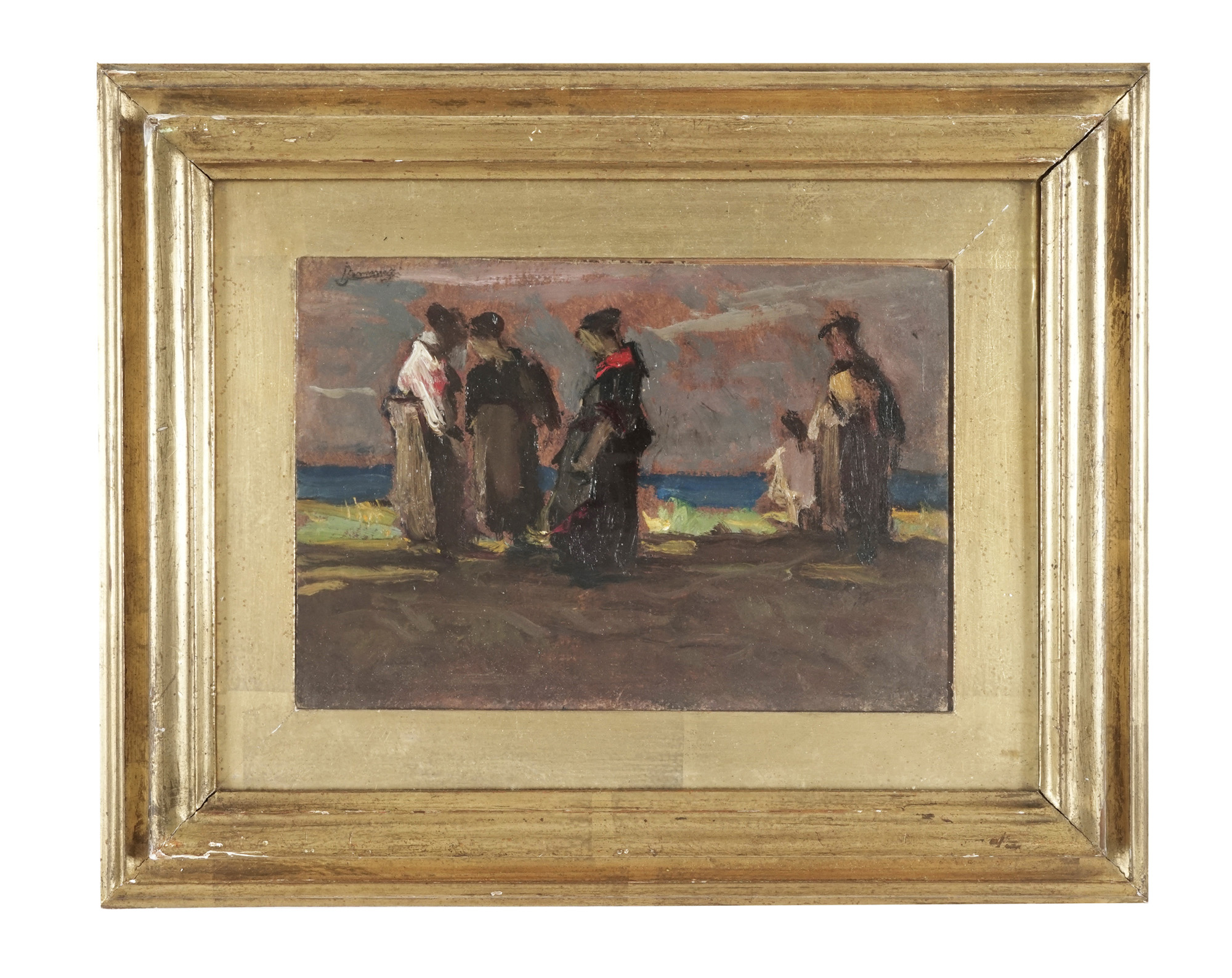Ludovico Tommasi, Figure sulla spiaggia. Olio su cartone. cm 15x22. Firmato a...