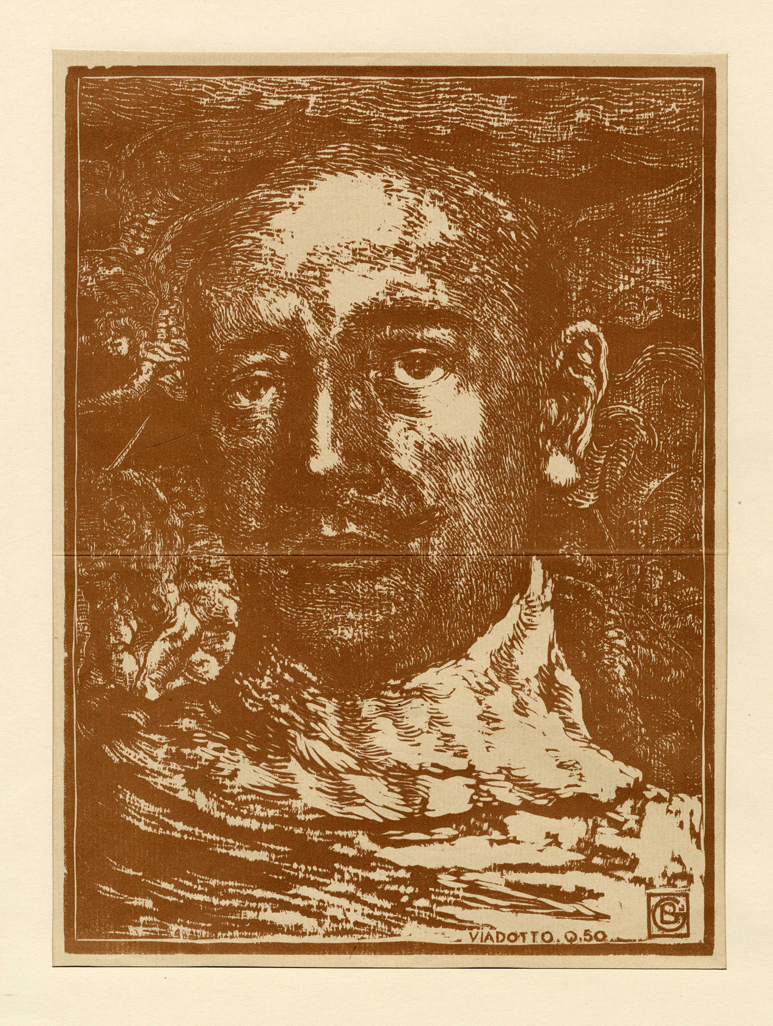 Xilografia su carta vergellata. mm 310x230. Foglio: mm 415x300. Firmata in lastra in basso a destra. "VIADOTTO. Q.50" in lastra in basso a destra. Opera in xilografia dal disegno a sanguigna ritrovato dopo la morte di Barbieri dentro la sua cassetta personale. Incisione proveniente da L'Eroica del 1938. Barbieri fu assegnato sotto richiesta di D'Annunzio al suo stesso reggimento, il 77° Fanteria della Brigata Toscana, situato sulla prima linea. Vi rimase fino alla morte. (1) Opera totalmente applicata a passe-partout. Ottima conservazione.