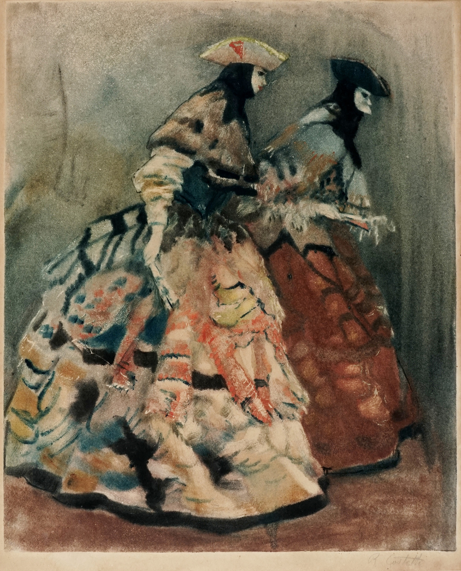 Monotipo. mm 515x420. Foglio: mm 625x470. Firmato a matita in basso a destra. (1) Opera totalmente applicata a passe-partout di supporto. Foglio brunito con tracce d'uso dovute al precedente incollaggio lungo i margini. Inciso in buono stato conservativo.