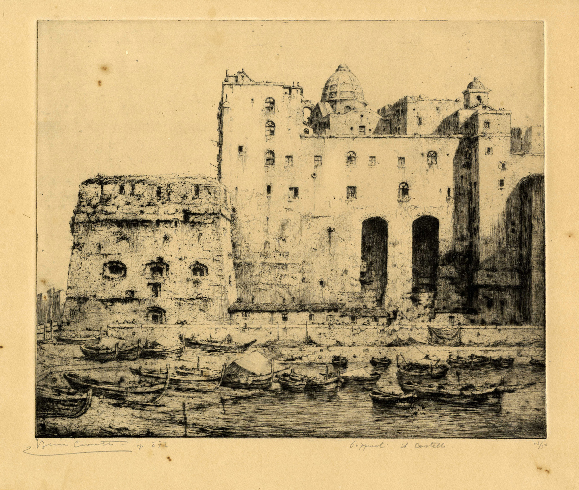 Acqueforti, acquetinte e puntesecche. mm 190/250x235/330. Foglio: mm 355/390x425/486. Tutte firmate a matita in basso a sinistra. Compongono il lotto le incisioni: Pozzuoli - Il Castello, Alberi e Catania - Via della Mecca. (3) Fogli con tracce di brunitura. Uno con fioriture sparse. Buona conservazione generale.