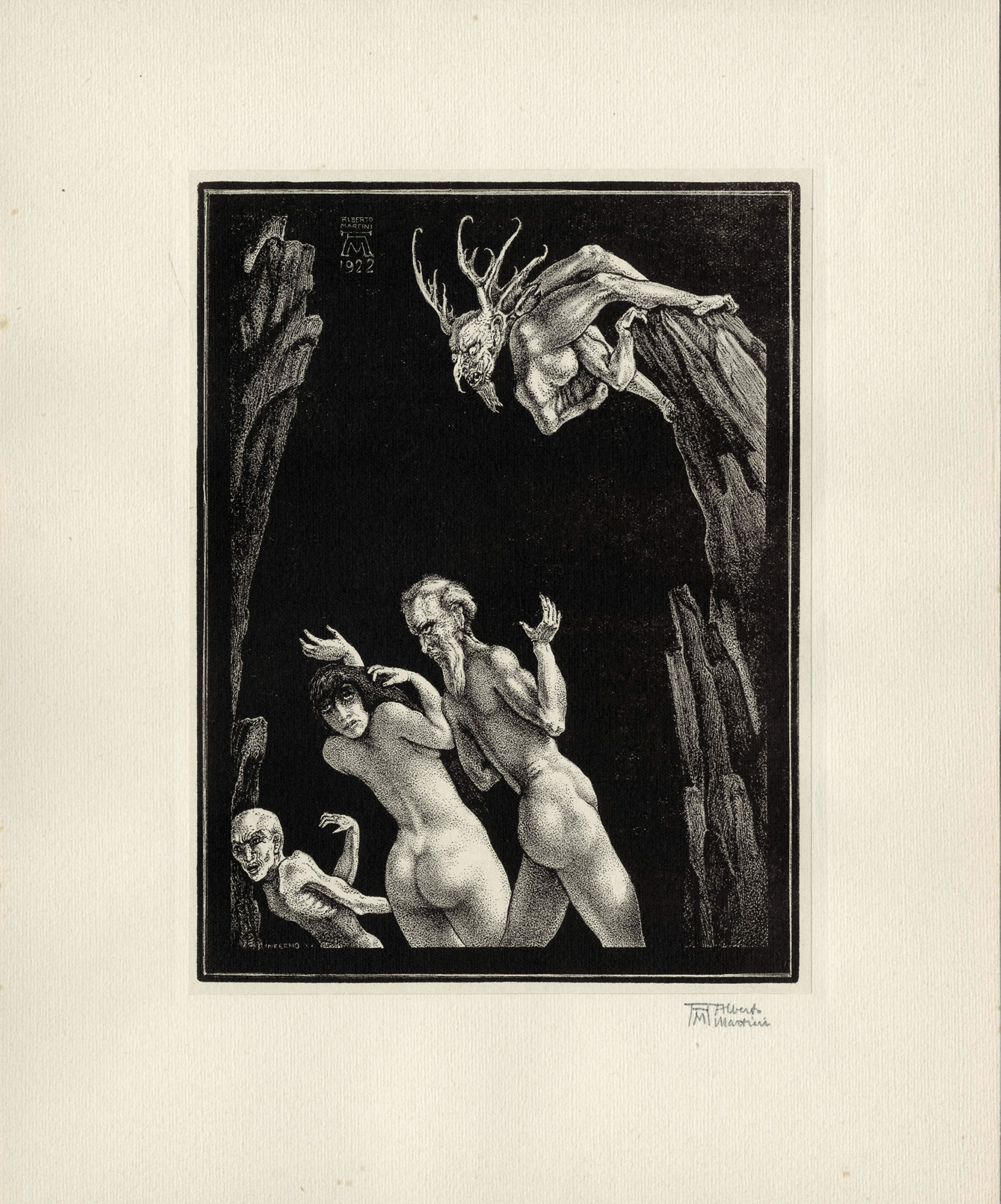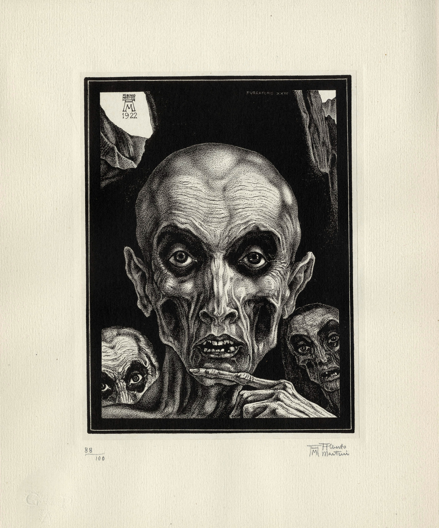 Alberto Martini, Lotto composto di 3 incisioni per la Divina Commedia. 1922....