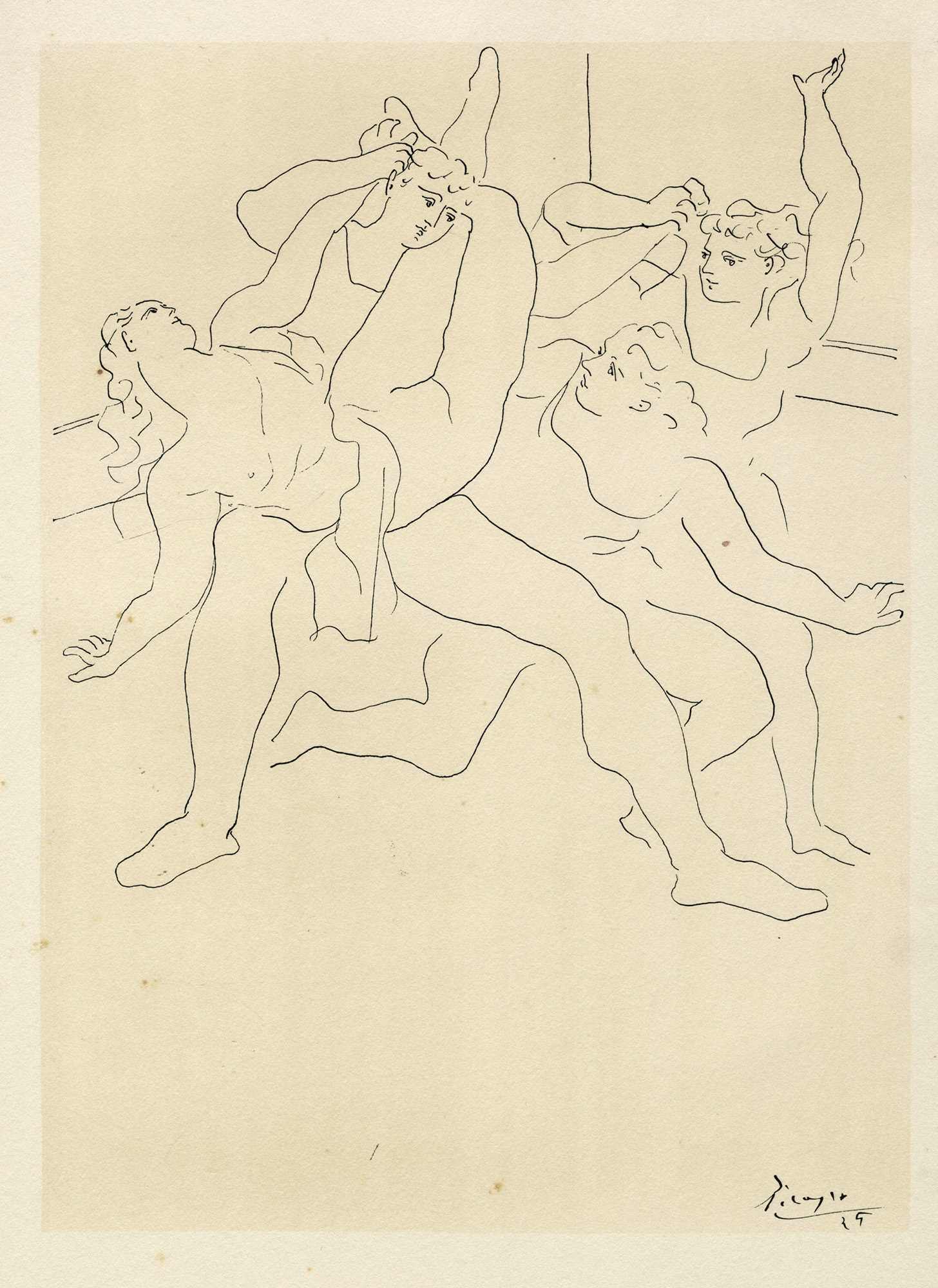Pablo Picasso, Quattro ballerine. 1925-46. Litografia su fondo crema. mm...
