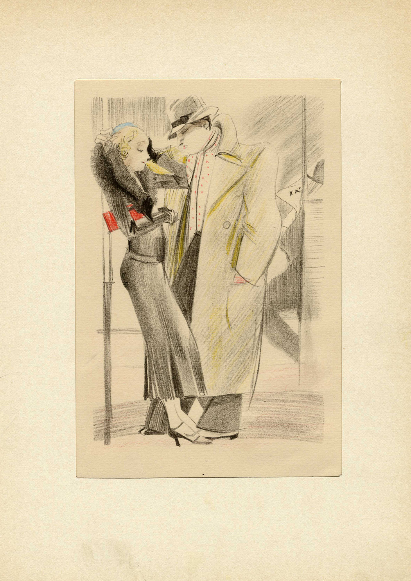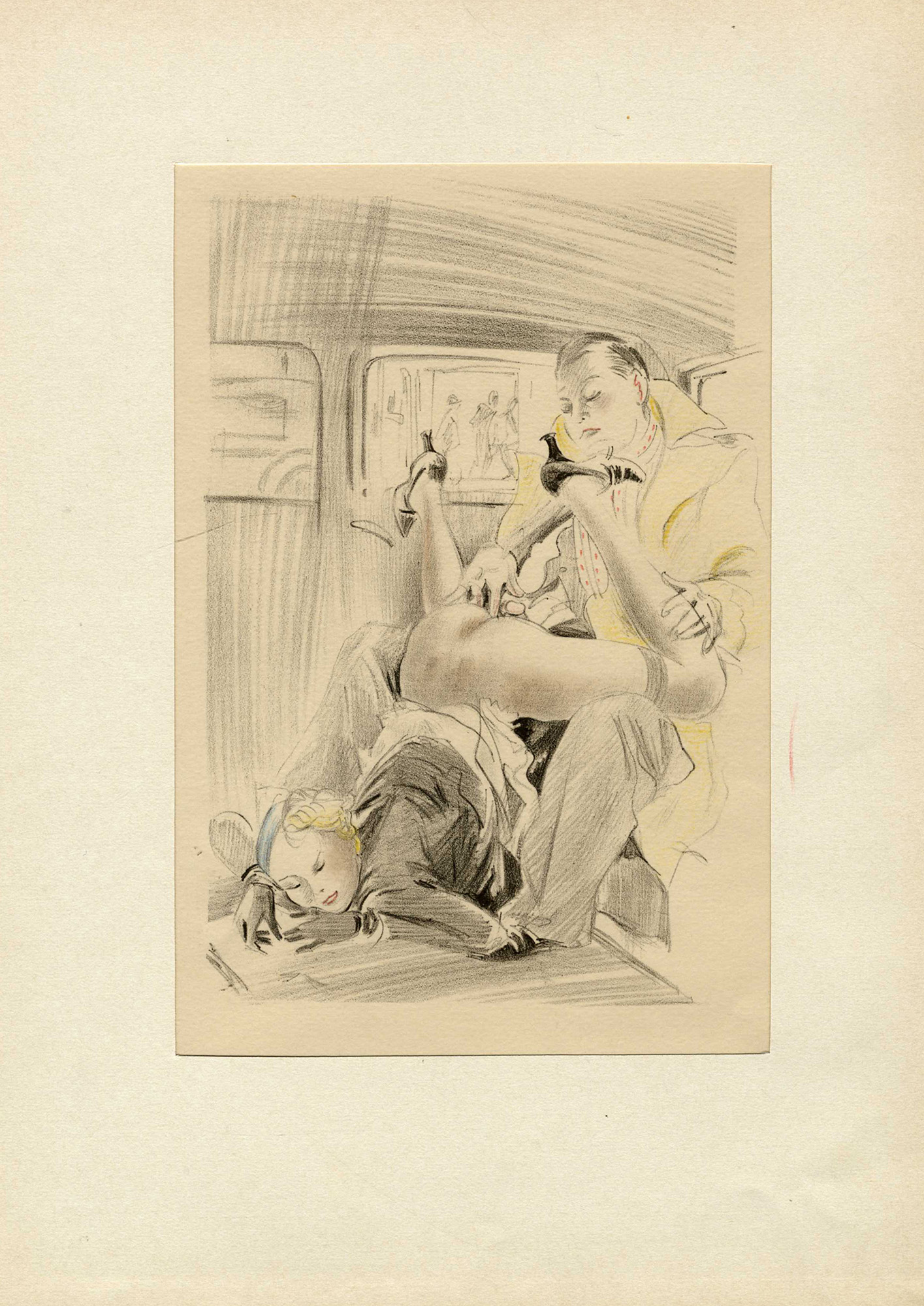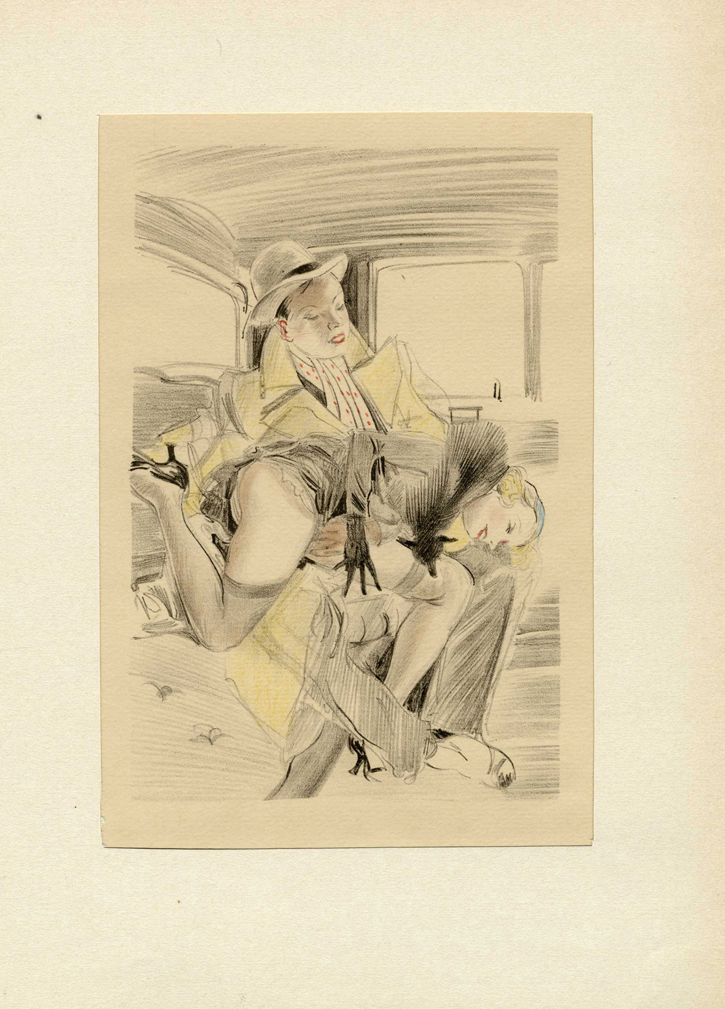 Raccolta di 31 tavole (compresa la prima recante il titolo) in litografia ritoccate a pastelli colorati contenute entro cartella in cartone e tela con lacci di stoffa. mm 170x110 ca. cad. Fogli: mm 280x190 cad. Ognuno parzialmente montato su passe-partout al margine destro di ogni foglio. Titolo impresso in nero sul piatto anteriore. Giustificazione di tiratura a stampa su carta vergellata applicata. Es. 275/516 recante le iniziali dell'editore Henri Pasquilenni iscritte a penna a sfera rossa. (1) Cartella contenitiva con difetti sparsi. Aletta inferiore strappata e rivestimenti in cartone lievemente danneggiati. Fogli con tracce d'uso e leggere bruniture diffuse. Incisi in ottimo stato conservativo.