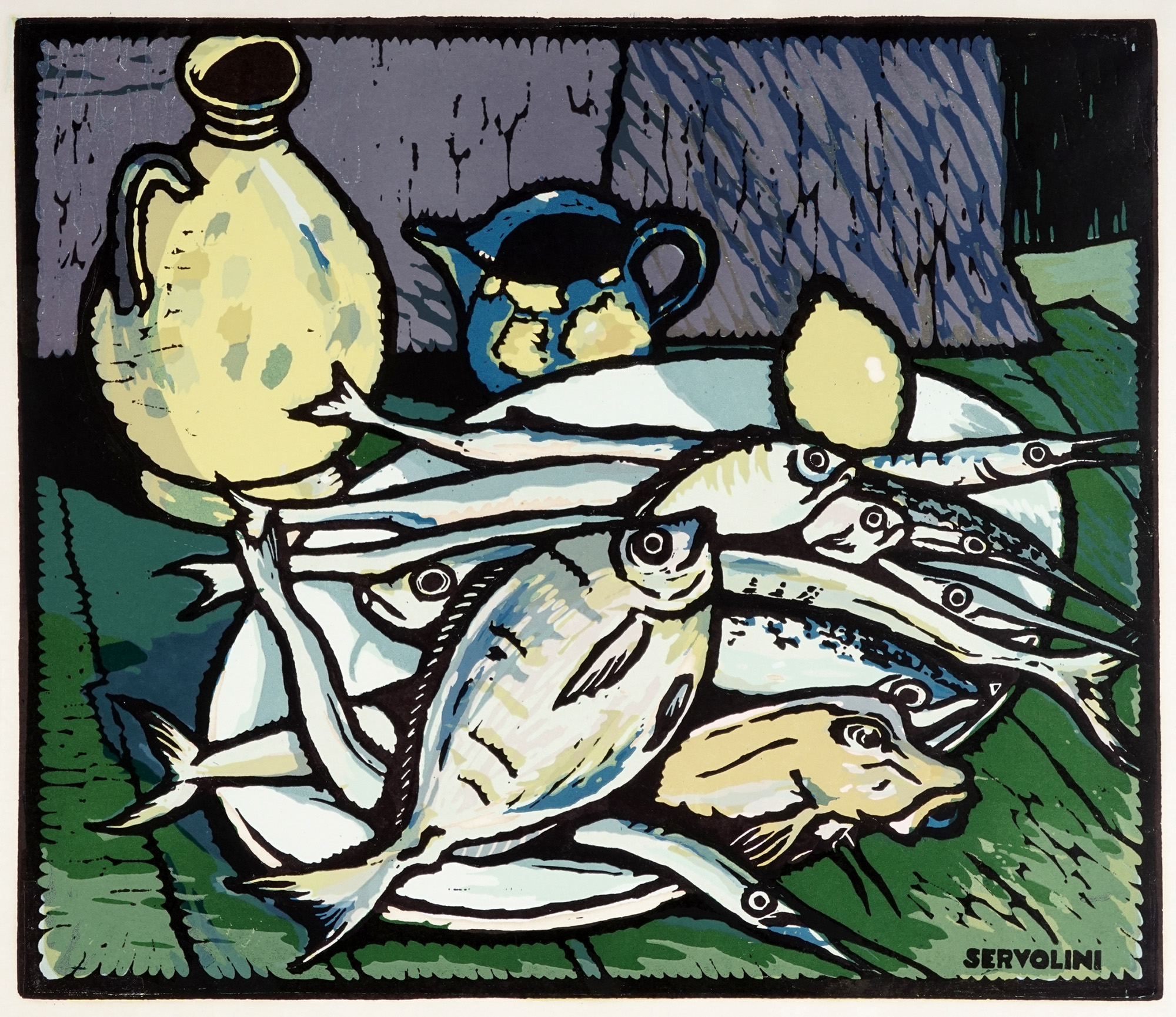 Luigi Servolini, Il pesce. 1929-35. Xilografia a 10 legni. mm 290x345....