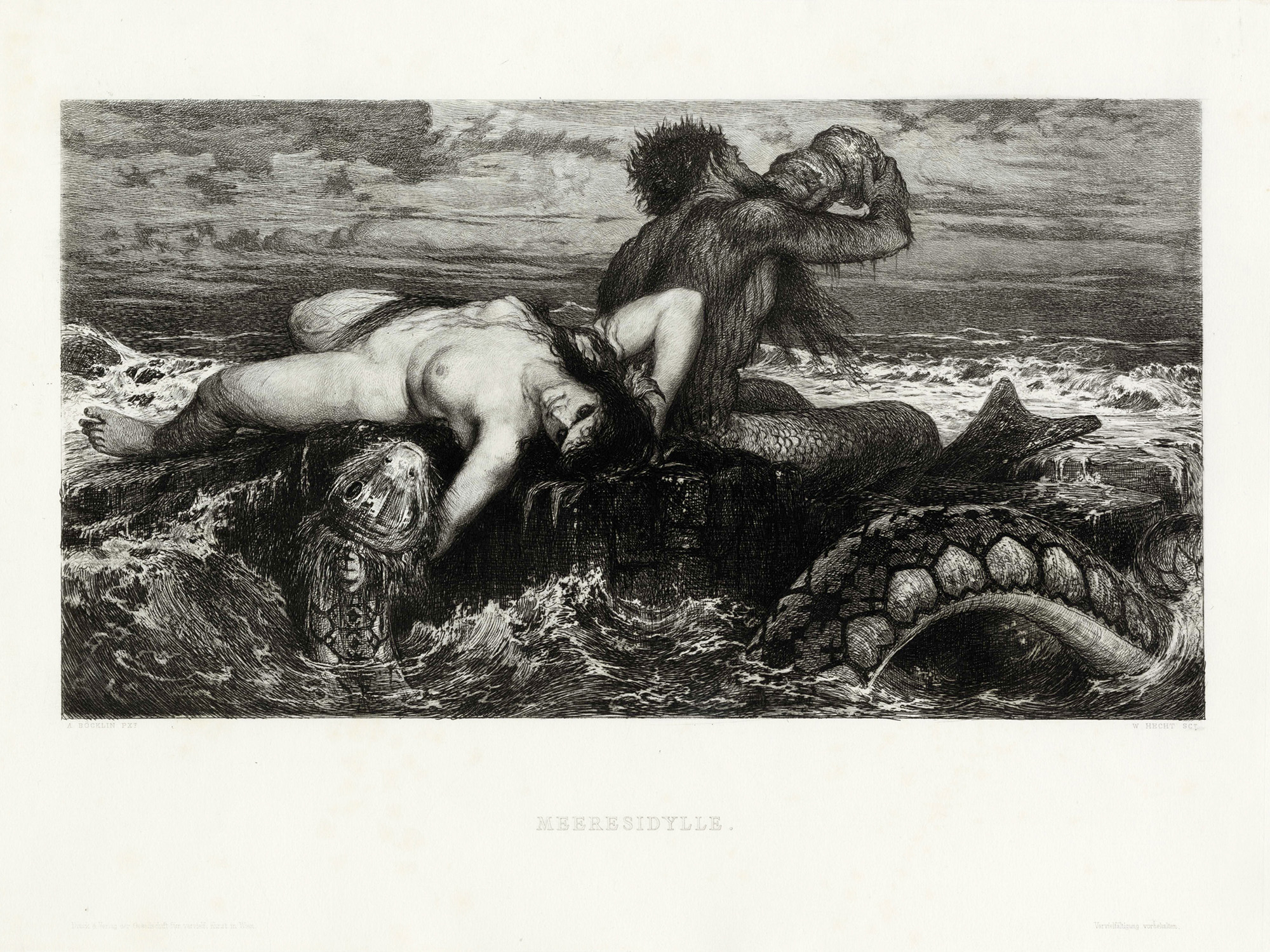Arnold Böcklin [da], Lotto composto di 2 incisioni. 1) Meeresidylle....