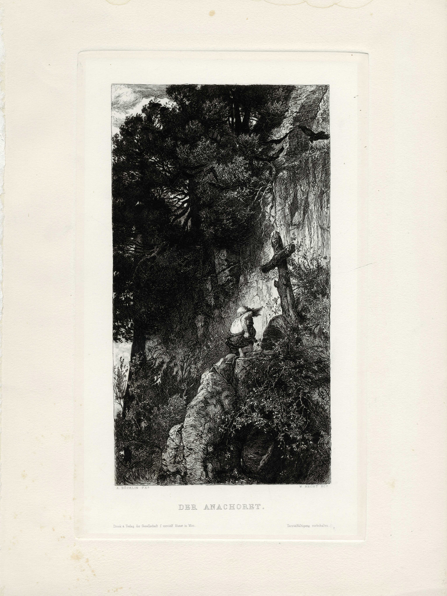 1) Meeresidylle. Acquaforte. mm 165x300. Foglio: mm 260x360. Titolata in lastra in basso al centro. Dati editoriali lungo il margine inferiore. 2) Der Anachoret. Acquaforte. mm 280x170. Foglio: mm 360x260. Titolata in lastra in basso al centro. Dati editoriali lungo il margine inferiore. Entrambi i fogli sono incisioni postume dagli omonimi lavori dell'Artista. (2) Difetti lungo i margini dovuti ad una precedente rilegatura. Buona conservazione generale.
