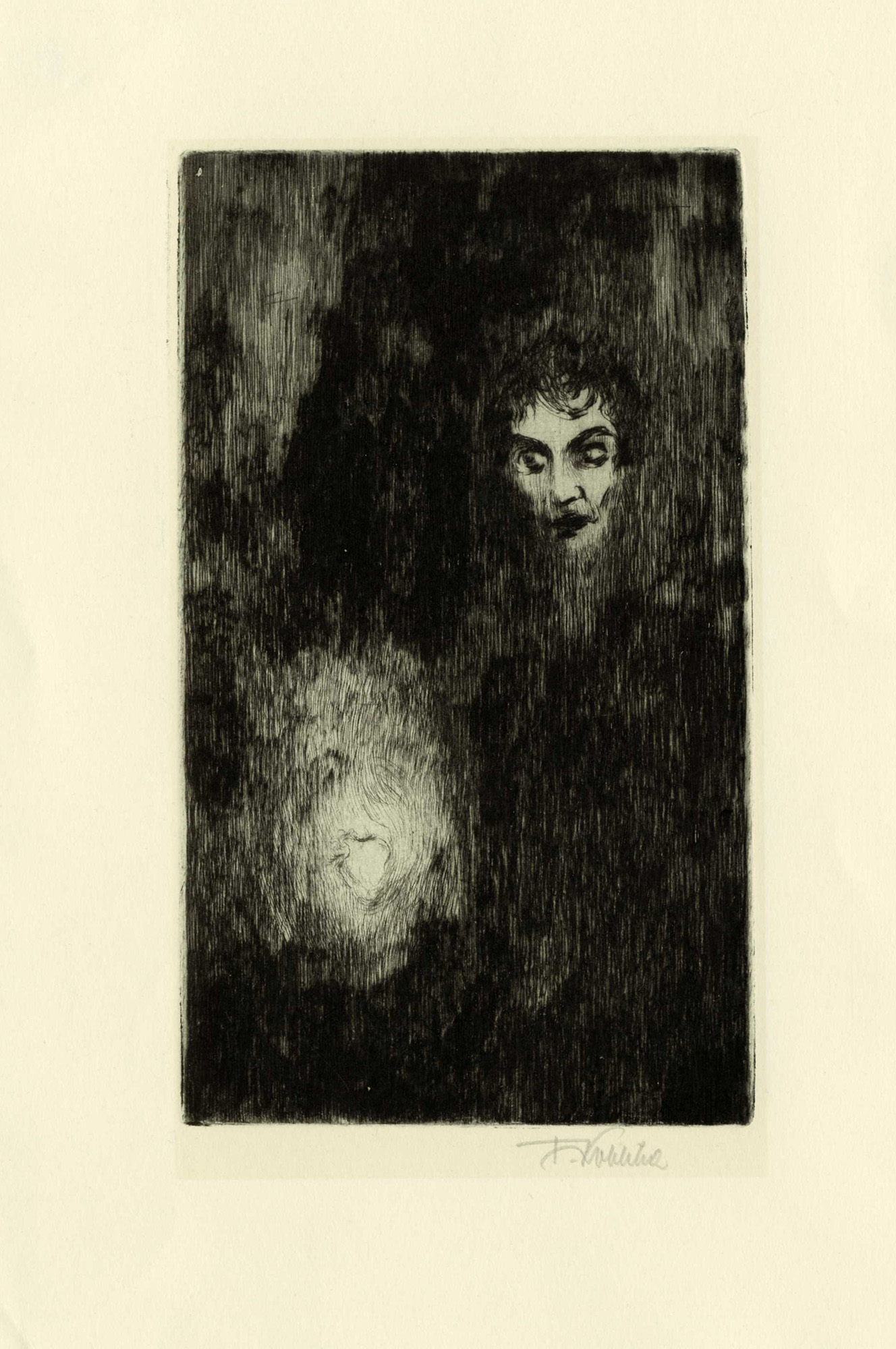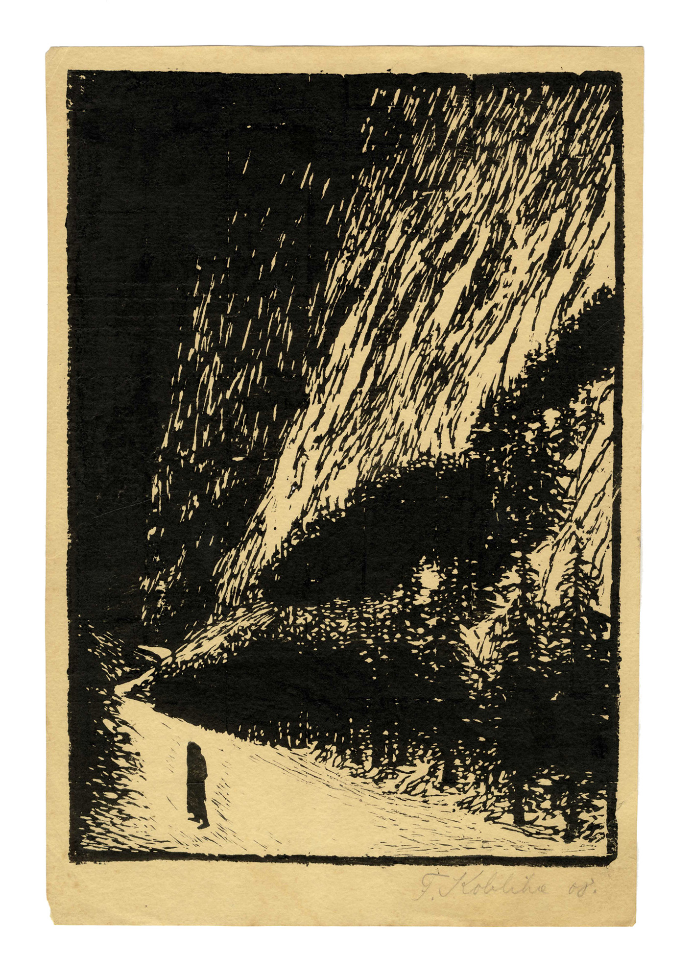 Frantisek Kobliha, Lotto composto di 2 incisioni. 1908. 1) Figura sul viale....